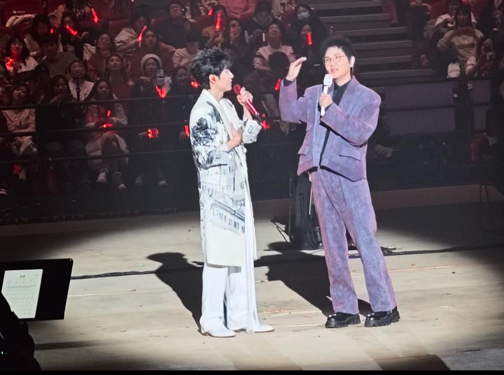 楚生与孙楠果然是音乐人之间的惺惺相惜。 在昨晚北京站的“荒芜之境”演唱会上,孙楠