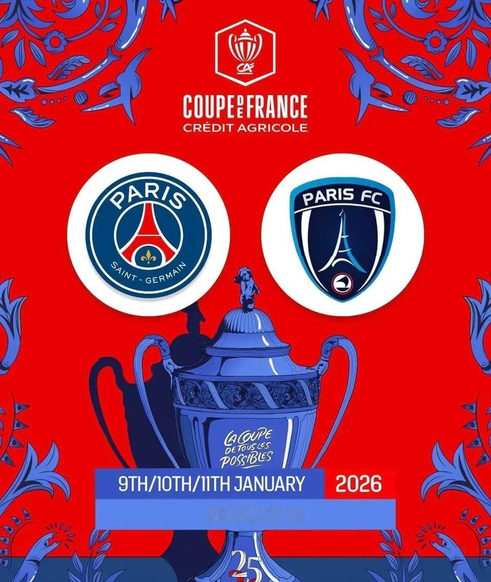法甲 2025-26赛季法国杯32强对阵出炉,巴黎圣日耳曼将在主场对阵同城球队巴黎FC,两队将在一周内迎来法甲、法国杯连续交手。巴黎圣日耳曼
