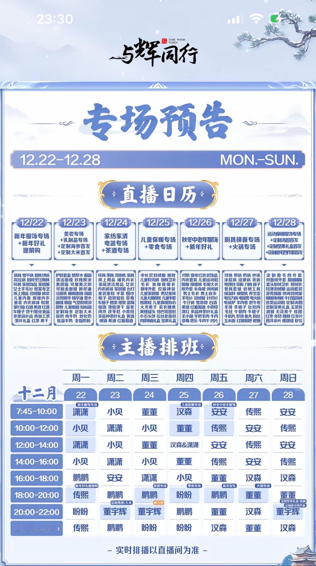 与辉同行这个星期是好消息不断。 第一,宇辉上播三天。 第二,24号晚上又有“破万卷”访谈。 第三,这个星期定制产品大爆发, 多个定制产品首发。 12月23号晚上, 定制海参和定制大米首发。 28号晚上, 定制汤圆定制堅果礼盒, 还有定制磨毛四件套首发。 这个星期还有定制吐司返场, 不过我没看到具体的时间。 昨天橱窗里偷偷摸摸的上了定制吐司了, 你们买到了吗? 等我知道消息去的时候已经没了。 与辉同行的定制产品品类越来越丰富, 并且上来就卖爆。 这是好事, 证明直播间已经慢慢开始转型, 商品的品控从源头抓起。 东方岳昨天发文说与辉同行的定制产品就是“自营品”, 只是换了个说法而已。 真的是这样吗? 定制产品的品控力度和自营品差不多, 都是自己直播间严把质量关。 但是定制产品的牌子依然是别人的, 与辉同行不贴牌, 不管卖的再好, 牌子依然是别人的, 这样做的优势就是与辉同行不需要仓库存库存, 也为合作企业宣传了品牌, 这是互利互惠。 而自营品是连人家的锅碗瓢盆都端了, 卖的好继续找你加工, 卖的不好就结束合作。 自营品的品控也可以把握, 但是投资大风险高, 因为需要仓库囤货, 还有产品积压的风险, 所以自营品的价格比较高, 这是正常的。 与辉同行的定制产品越来越丰富, 好处多但是风险也大。 因为树大招风, 销量好会招来很多竞争对手的记恨。 动了人家利益挡了人家的路, 轻则有职业键盘侠攻击产品, 重则有人会给与辉同行挖坑。 没办法, 这就是商业逻辑, 风险和机遇并存。 面对风险, 与辉同行只有严格把控质量关, 不求快只求稳, 好产品打开市场, 以不变应万变, 才能在发展中求生存。 不能因为害怕就不继续走, 公司现在发展的快, 员工增加, 宇辉需要承担的风险和责任都在增加。 前路漫漫, 211同学陪伴前行! 董宇辉