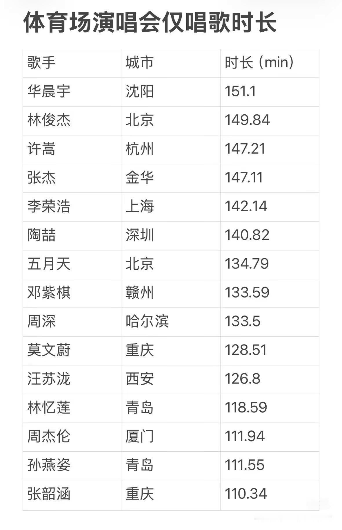 体育馆个唱仅唱歌时间一览表:你最喜欢哪一位?