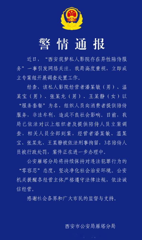 私人影院异性陪侍4人被刑拘 这种事现在太多了,直播和团购里也能看到这种涉黄擦边的,还有那个所谓的台球宝贝,太让人恶心了,都好好查一查吧!简直败坏社会风气。