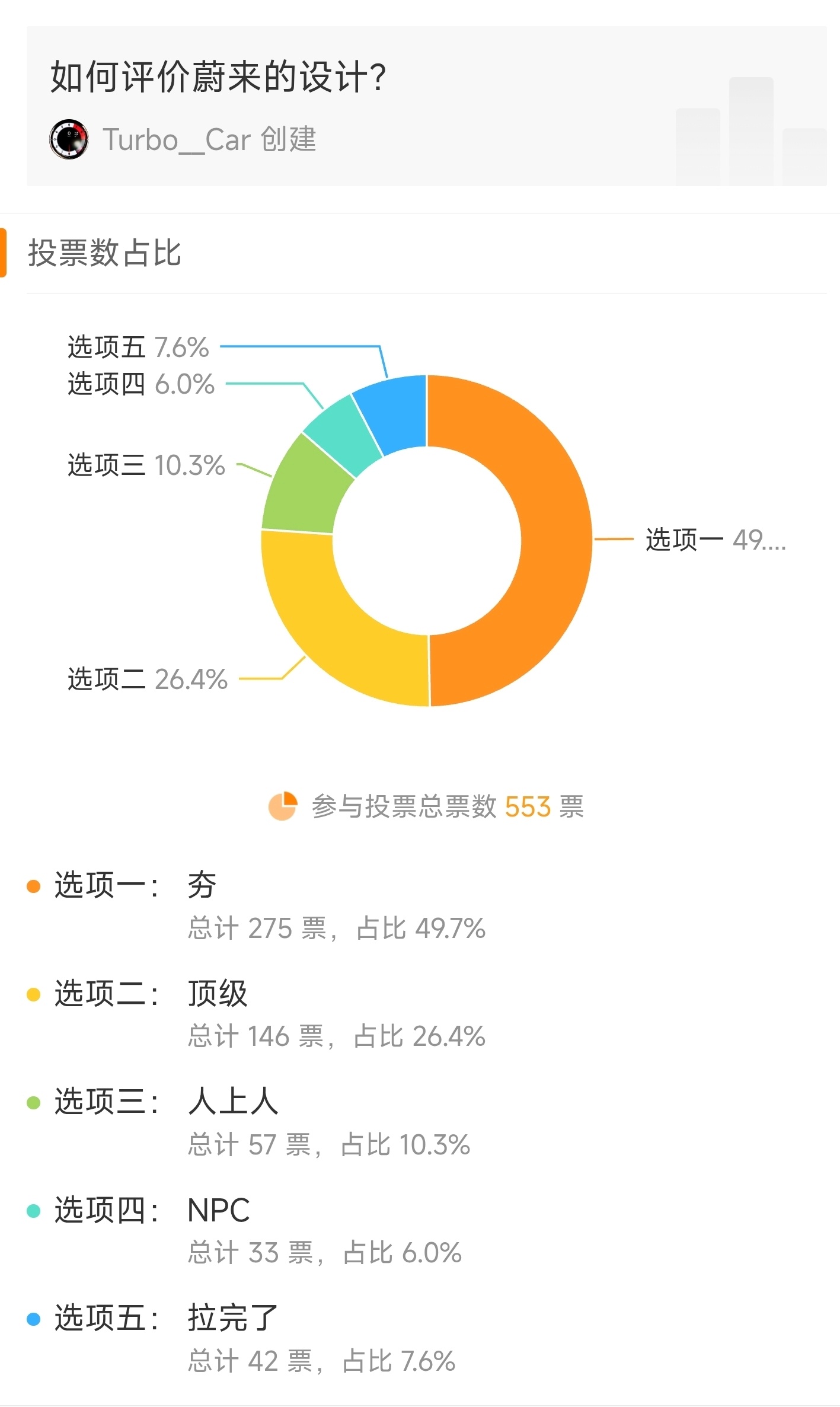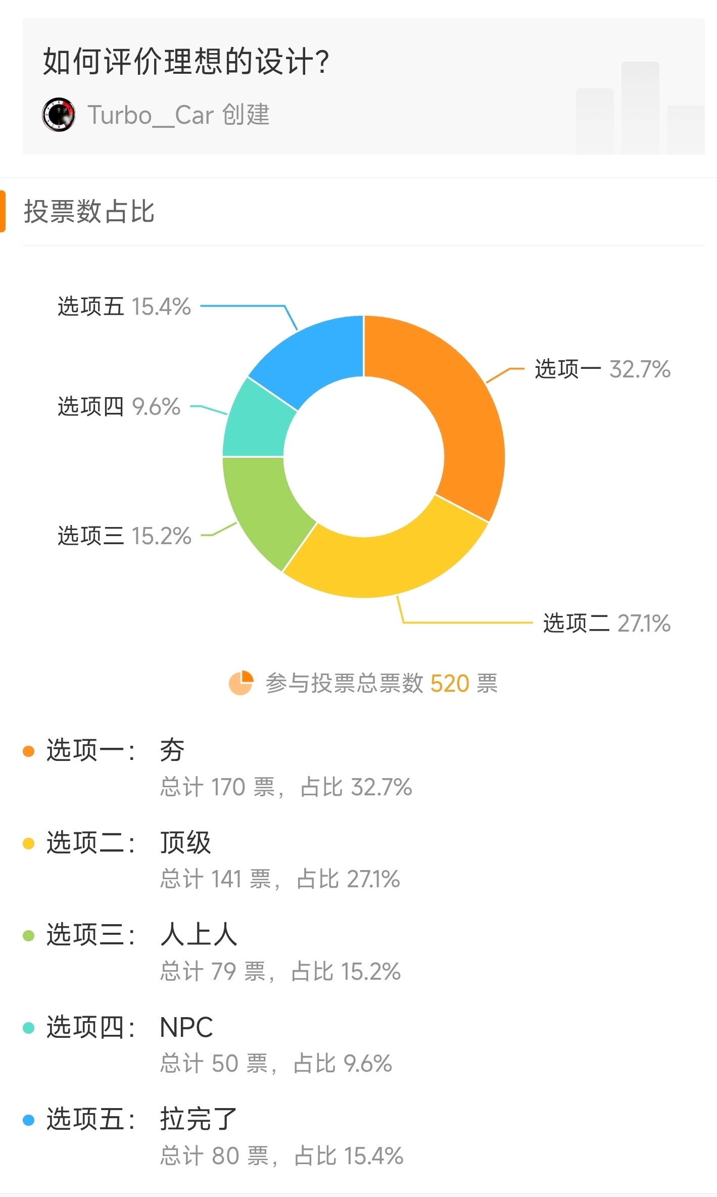大家的投票结果我汇总了一下做了张图,总共5000多次投票关于新势力品牌的设计,大家心目中的大概排名如图1(只谈论设计,不包括品牌和产品其他方面,纯主观)