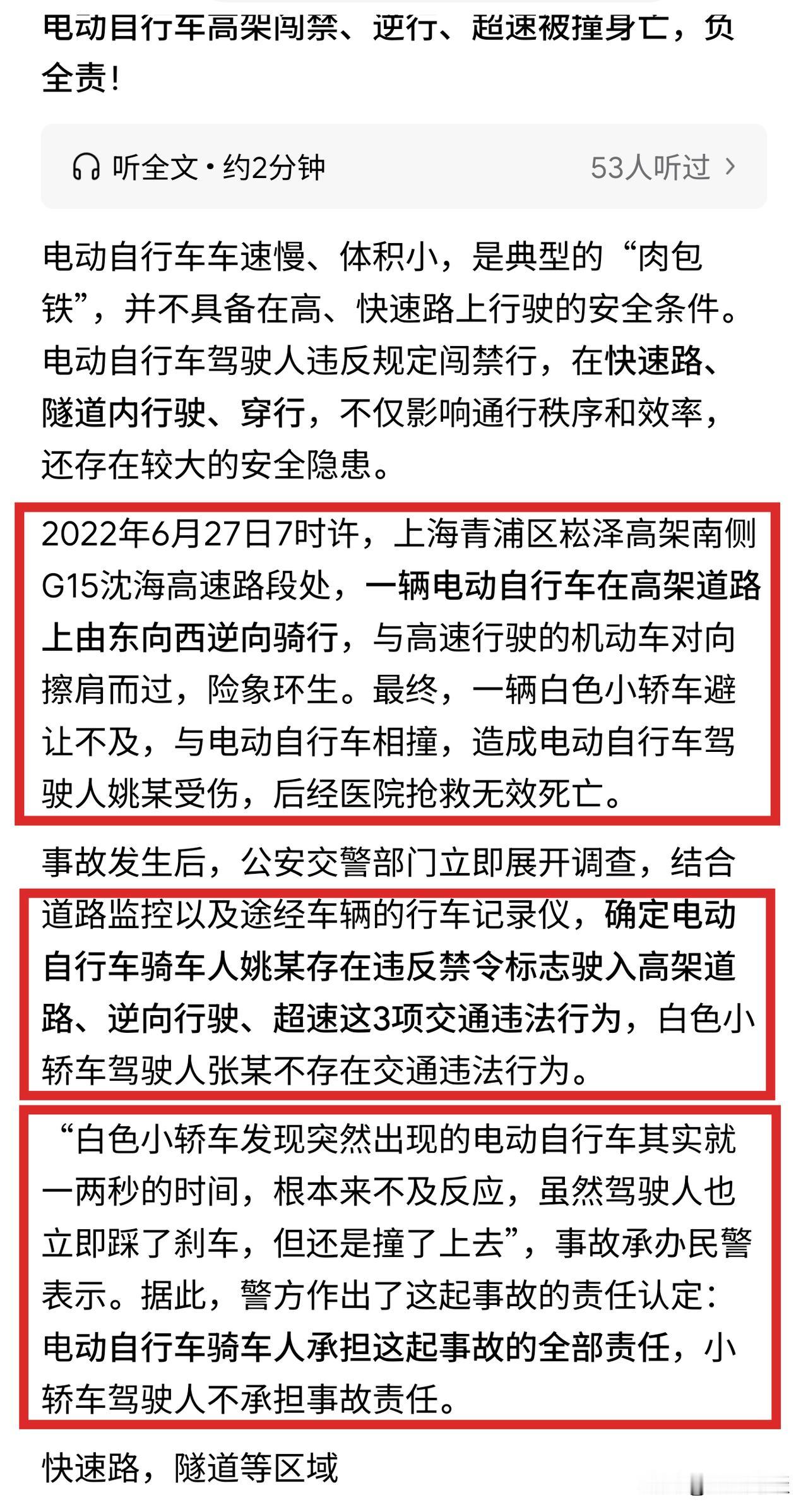 一电动自行车上高架,闯禁行、逆行、超速被撞人没了,还要负全责! 正常行驶的小汽车