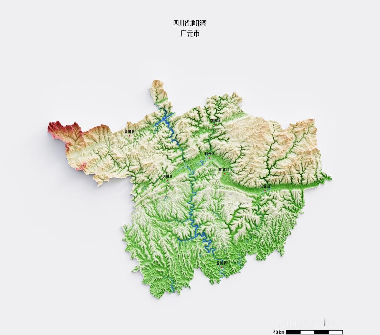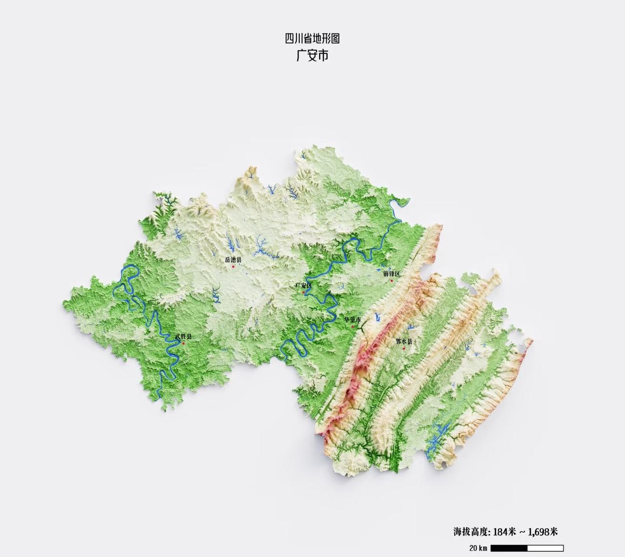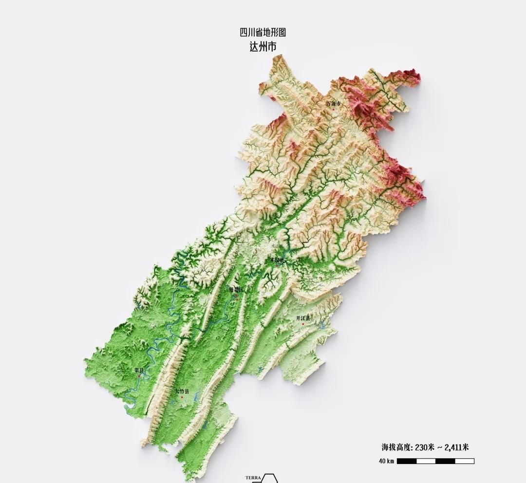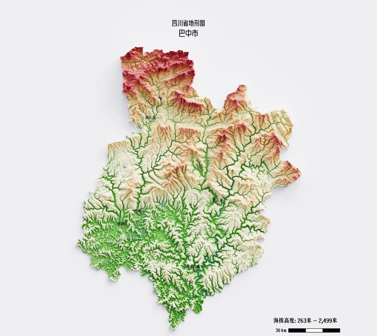 放大镜下的四川地形图,哪个最宜居的地方? 看川东北的槽谷与褶皱的大地纹理,槽谷系的达州与广安,最褶皱的巴中与广元蜿蜒曲折嘉陵江。