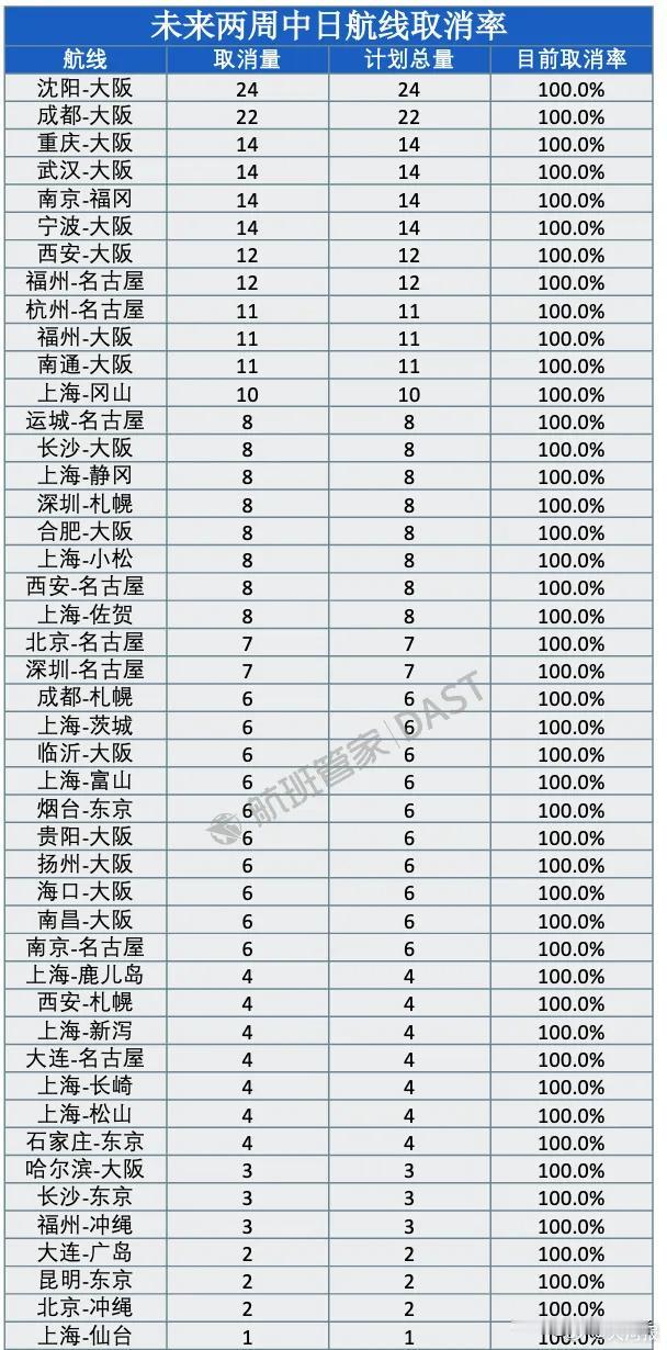 12月22日至1月4日,46条中日航线将取消全部航班。截至2025年12月22日,2026年1月中国大陆赴日航班取消量已达2195班次,航班取消率为40.4%。