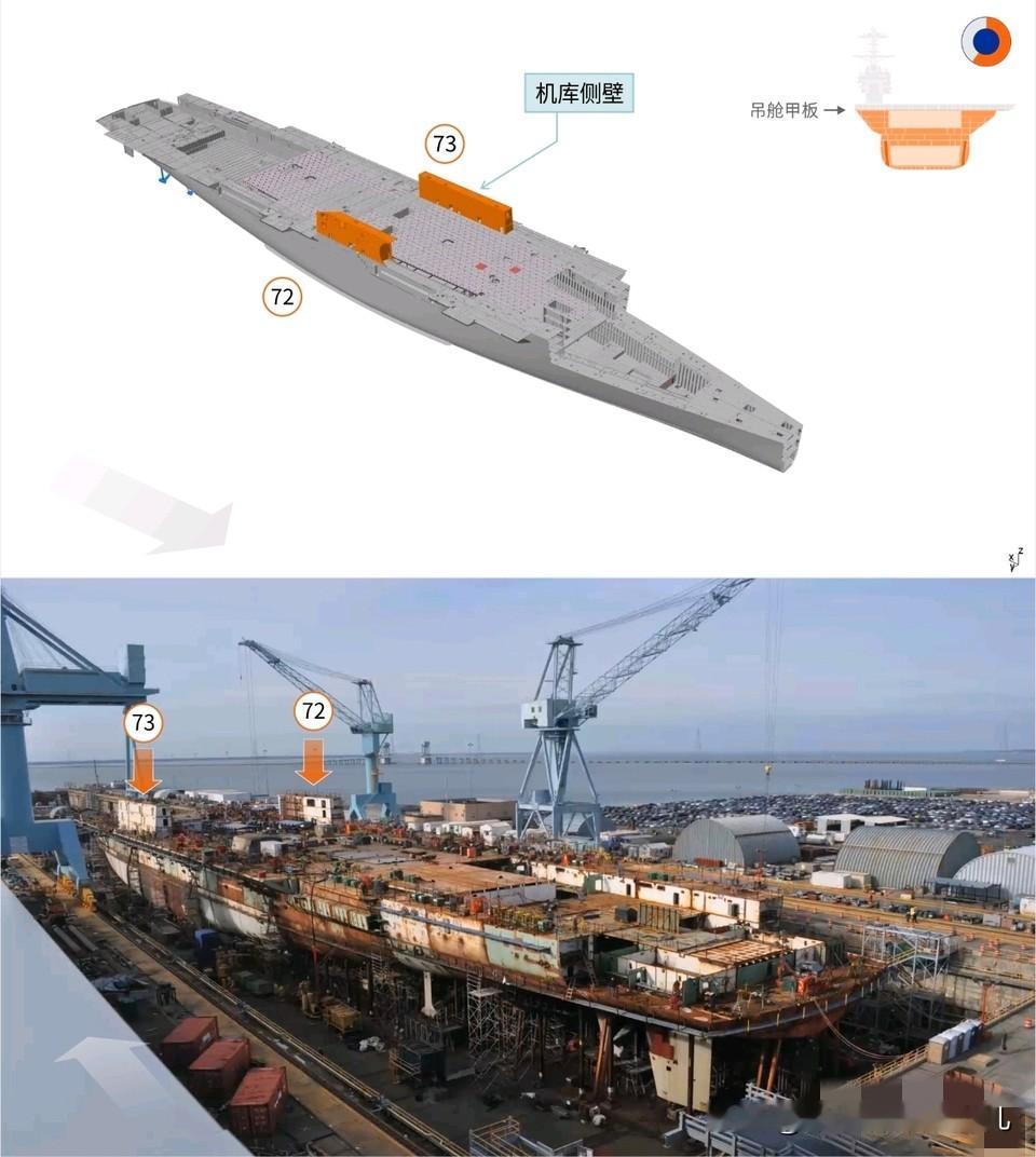 机库侧壁安装完成,水线都没接完就开始上机库了【图片】 对比当年福建舰(003)同期建造情况,达利安4号的建造速度明显提升,拼装工艺看着更成熟利落。 要知道当初福建舰从机库施工到下水用了不少时间,现在照着这节奏,这速度不用2027,2026下半年下水都算慢的...