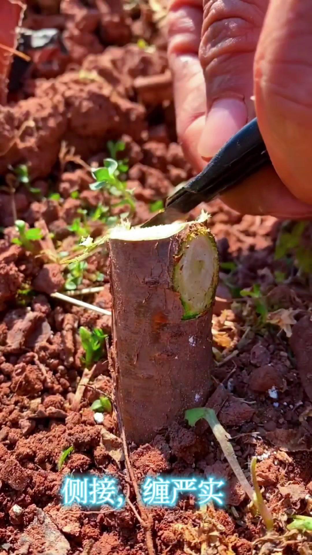 侧接嫁接技术,新手也能学会!🌱侧接是常用的果树嫁接方法,操作简单又实用。选好砧木和接穗,在合适位置切出切口,把接穗插入,关键是要缠严实,让两者紧密贴合,这样才能提高成活率。掌握这个小技巧,果树嫁接不再难~
