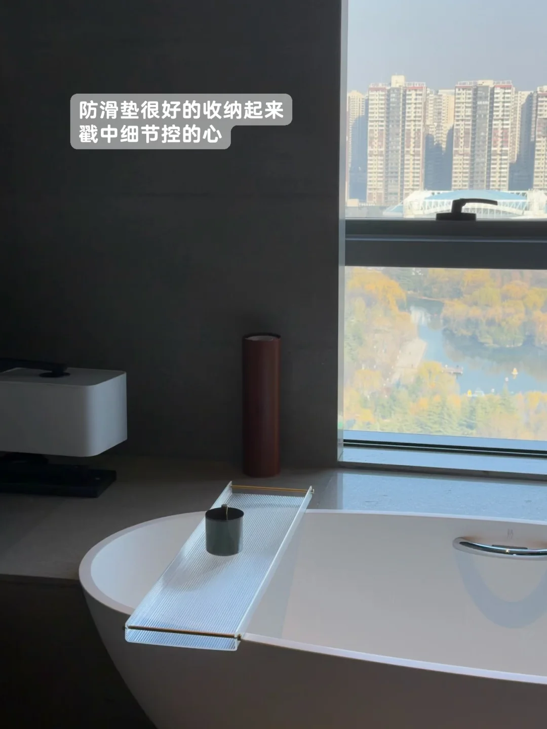 🏨西安经开洲际酒店,网上的好口碑不是徒有虚名,ccd悦目的设计,友好的房价。房间细节见品质,衣帽间的挂衣杆是皮质的,防滑垫也用皮桶装起来,细节控狂喜。