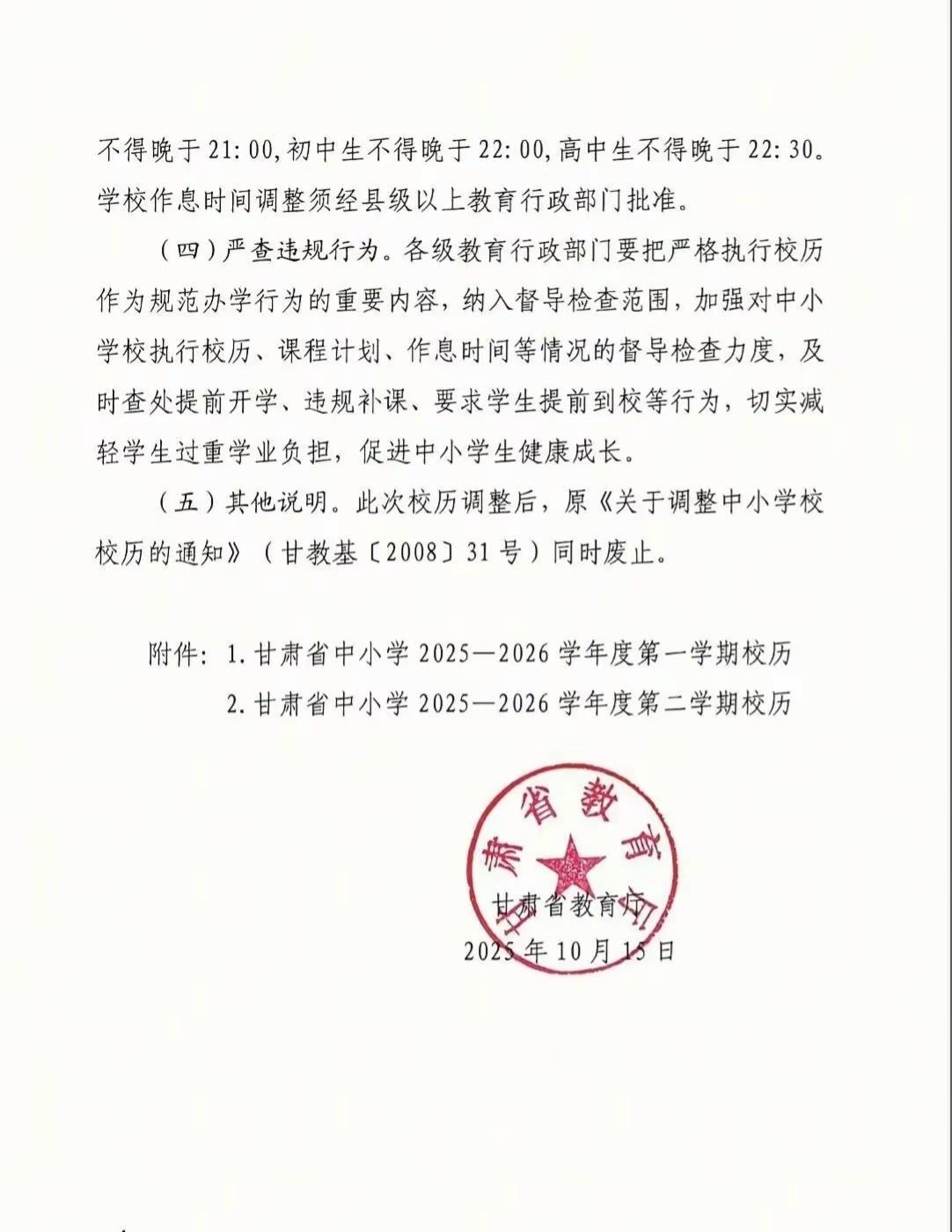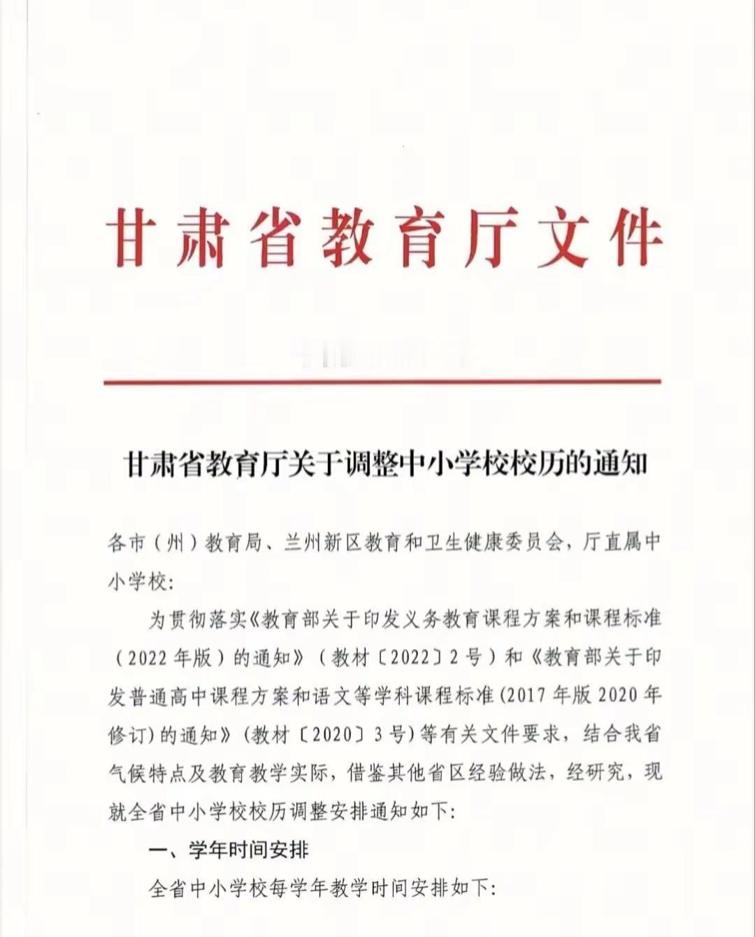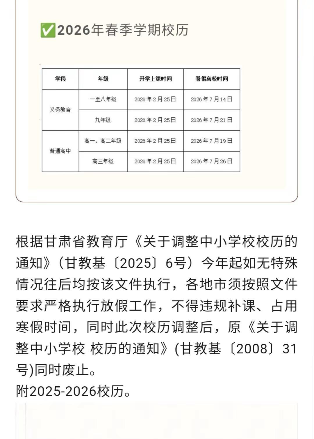 甘肃省中小学2026年寒假放假时间确定。中小学放假时间 中小学放假通知 小学放假时间