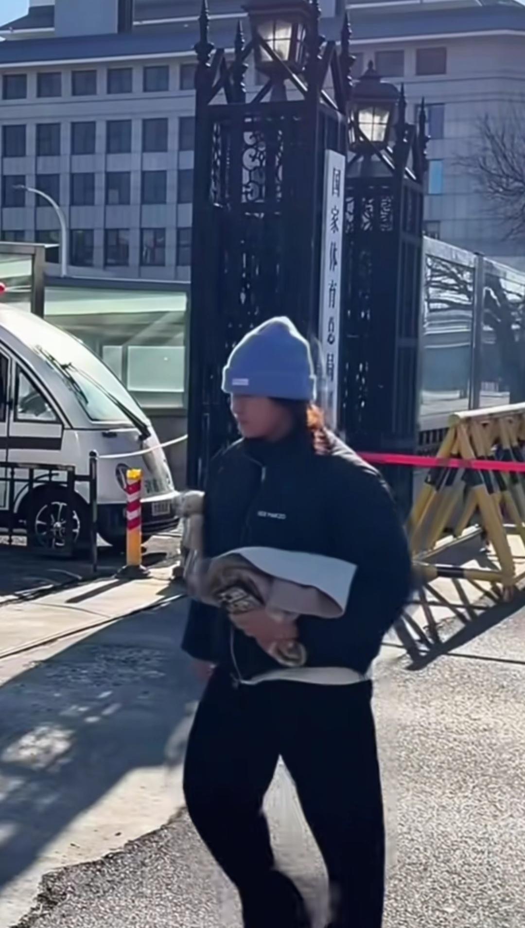 12月21日,全红婵坐着一辆白色轿车,去体育总局了,看起来还是那么可爱。 全红婵穿着白色板鞋,黑色裤子和黑色羽绒服,戴着蓝色帽子,有意思的是,黑色羽绒服的右胳膊上还佩戴了小玩偶。 全红婵在北京还和陈艺文相聚了,陈艺文戴着墨镜,她们一起在户外的小桌子上喝着饮品,两个人还相拥着一起合影,这是她们最快乐的时光。