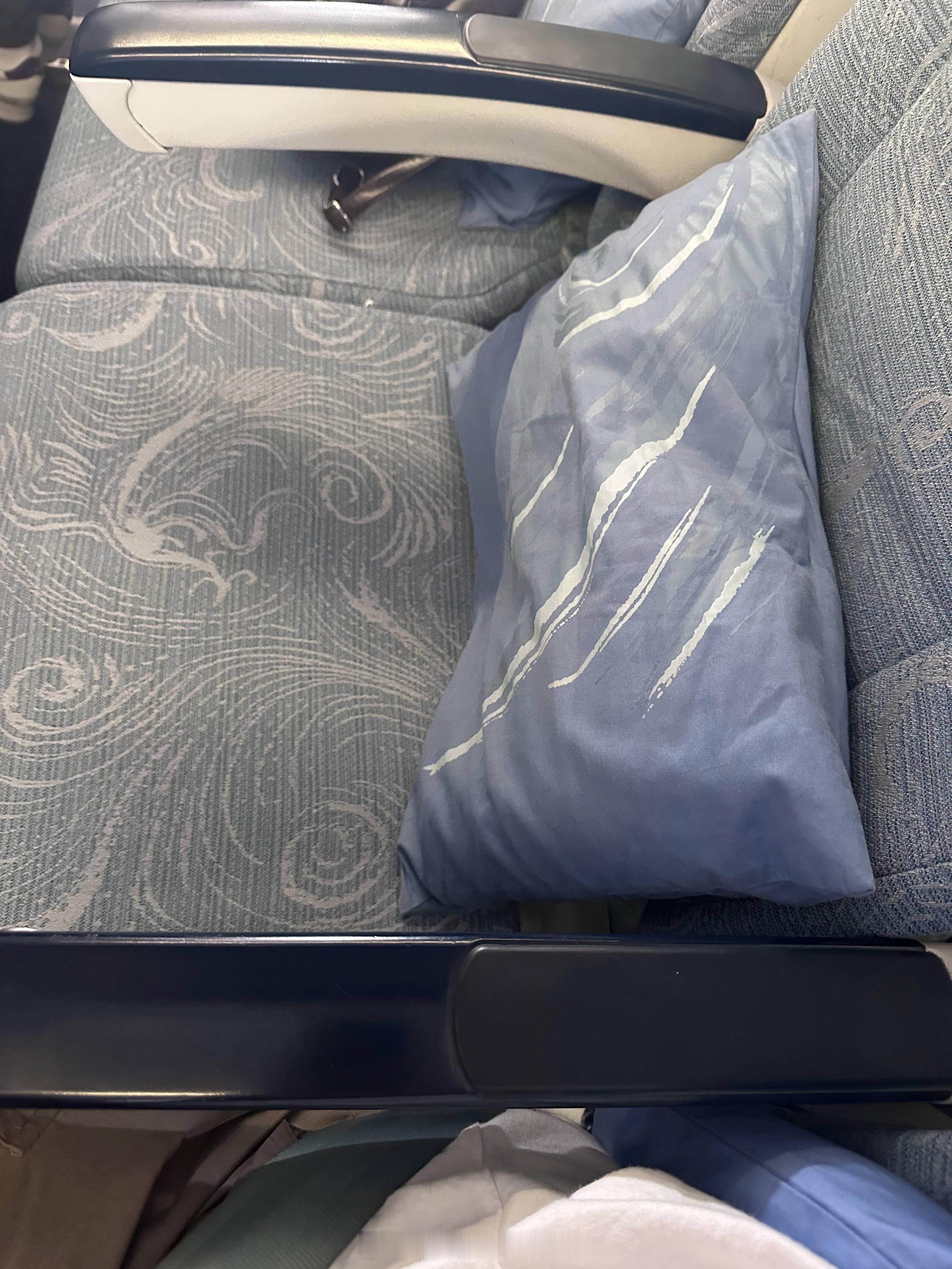 最普通的经济舱座椅都有靠枕,腿部空间都比较宽,你就不能改进下吗?整天都是最窄的空间,用个靠枕也不给,刀片座椅,抠门得很……
