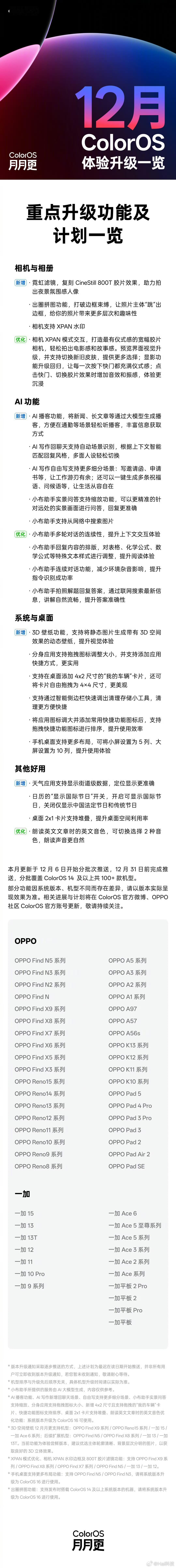 ColorOS 16年终月更来了,好家伙~Find X9系列出圈Live拼图、全新哈苏XPan、800T胶片滤镜、AI播客、3D空间壁纸等等重磅新功能都来了,不愧是月月有节目的ColorOS,这点确实狠加分~