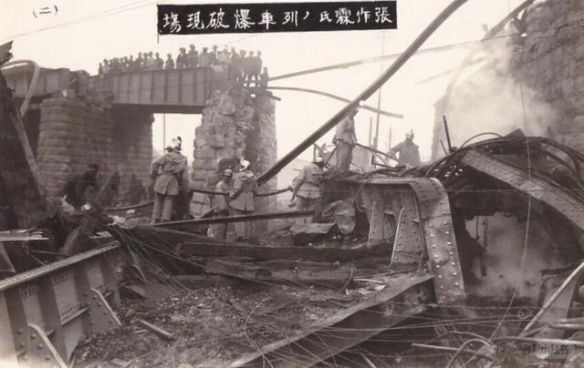 这张照片是1928年皇姑屯事件的爆炸现场,地点是沈阳皇姑屯的三洞桥(京奉铁路与日本控制的南满铁路交汇处),画面中可见炸毁变形的列车残骸、破损的桥梁结构,以及在现场的人员。 1928年,张作霖因抵制日本在东北的侵略性利益要求(如强索铁路权),被日本关东军预谋暗杀:关东军在三洞桥预埋30袋炸药,于6月4日清晨张作霖专列通过时引爆炸药,制造了这场“事故”。 照片中的列车是张作霖的专用“花车”(原是慈禧御用列车),其乘坐的车厢位于列车中部,是爆炸破坏最严重的区域:同行的黑龙江督军吴俊升当场被炸死,张作霖被炸出车厢、咽喉破裂,被奉军救回沈阳帅府后不久去世。