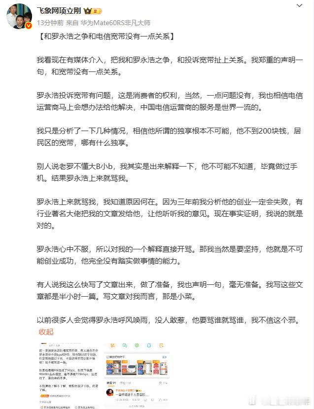项立刚回应与罗永浩之争两个互联网大佬,在网上开骂真的不太好吧,不过罗永浩的嘴真的