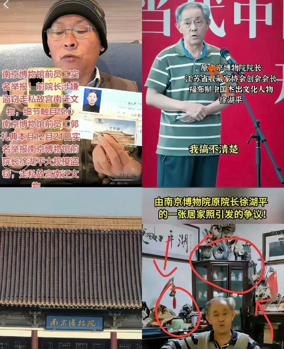 12月21日,南京博物院文物典藏部退休职工郭礼典(工号08006)发布实名举报视频,指控前院长徐湖平在1980年代“有组织、有预谋、大规模盗窃并走私故宫南迁国宝文物”。此外,针对“南京博物院获赠名画《江南春》离奇现身拍卖市场”事件,江苏省文化和旅游厅已牵头成立工作专班,国家文物局也已介入,展开联合调查。南博退休员工举报原院长盗窃走私文物时事满谈从南京博物院提供的1997年5月8日《江南春》拨交文件来看,“批准人”一栏确有徐湖平亲笔签名,与其表态的“此事未经过我手”“我不是书画鉴定家”形成明显矛盾。文件显示,该画当年被鉴定为“赝品”后,以6800元划拨给江苏省文物总店,而徐湖平当时兼任接收方——省文物总店的法定代表人,实现了“左手批、右手接”的闭环操作。自2008年起,南博多名职工就曾数次联名举报时任院长徐湖平,包括不限于:涉嫌大规模盗窃、倒卖故宫南迁文物,“左手倒右手”式操作将馆藏文物贩卖。郭礼典称自2008年起多次实名举报,但均因“保护伞势力庞大”而被压制,未能进入司法程序。直到此次“庞莱臣捐赠文物失踪并现身拍卖”事件,引发网络关注和热议,相关举报才再度引发舆论和官方关注。若相关举报属实,徐湖平背后绝对有一张巨大的利益网,由于馆藏文物的高价值,相关利益输送或是天文数字。南博退休员工举报原院长盗窃走私文物