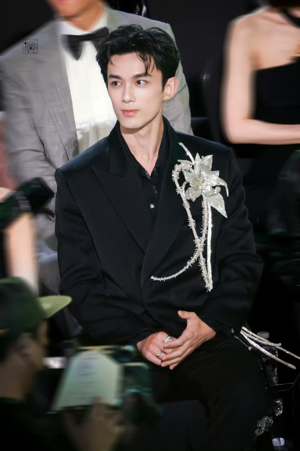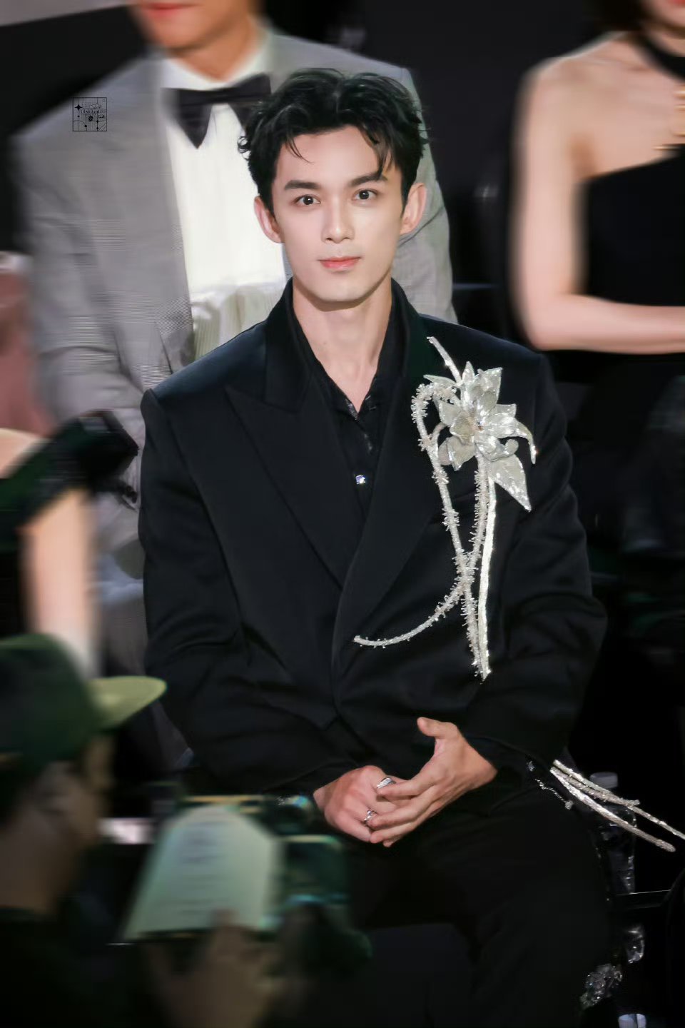 吴磊星光大赏内场造型来了,黑色套装+胸口特别的花朵造型,青春洋溢~