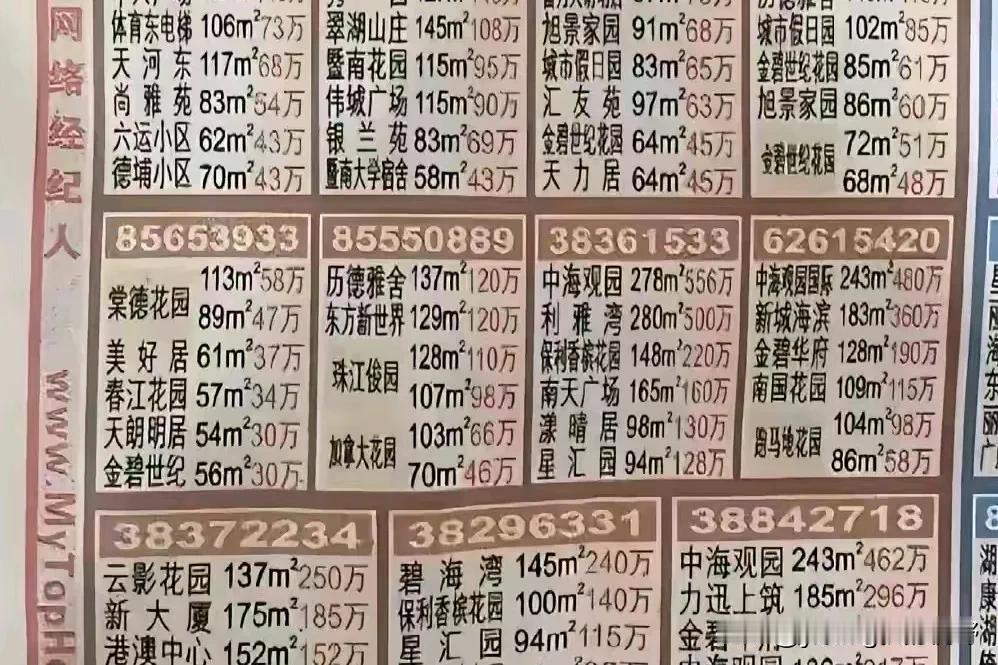 在2005年的时候,广州的房价大概是什么水平呢?从这一张报纸上的信息就可以知晓。在那个时候,天河区的房价普遍也要五六千了,有些黄金地段的价格已经超过了1万,甚至还有2万的单价。那时候在广州上班的工资可能也就两三千元吧?工资收入永远赶不上房价的水平。