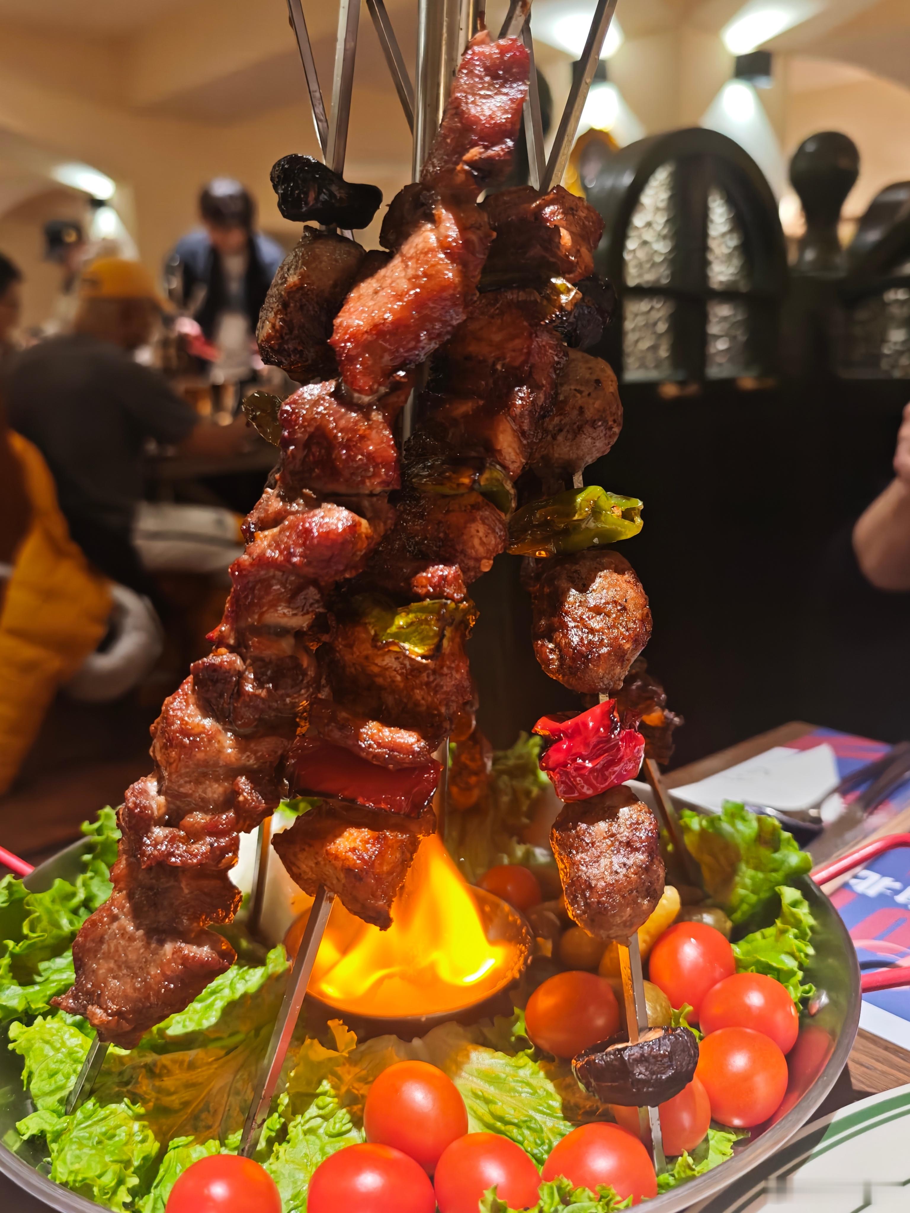 今晚吃俄餐毛子的东西就是大啊!这肉串吃一个就饱了吧?