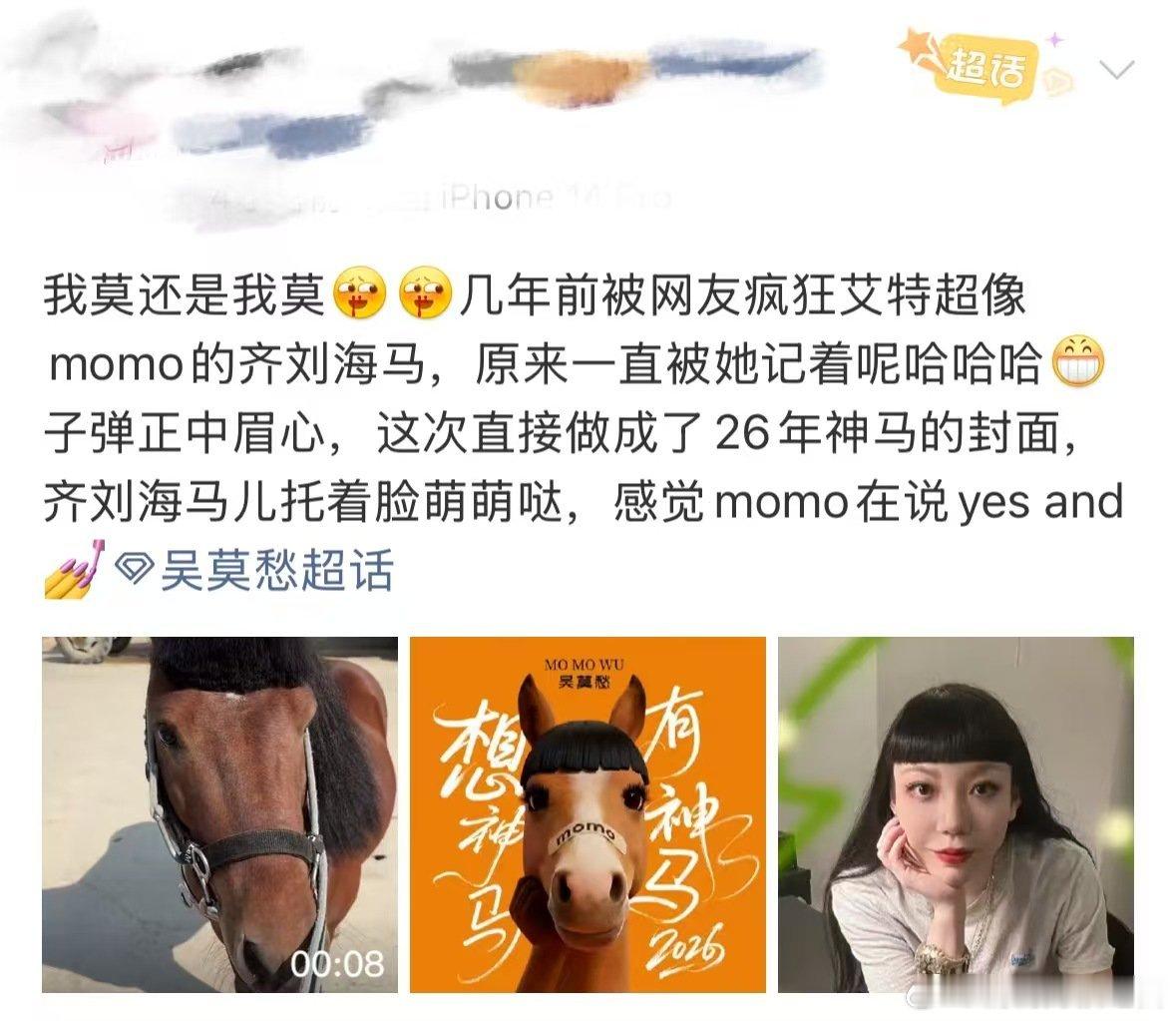 吴莫愁撞脸刘海马 新歌封面被全网玩梗,吴莫愁不躲不避大方接招,还跟着一起嗨。唱腔从当年的张扬到现在的圆润,她这一路的变化真的很明显,越来越有味道!