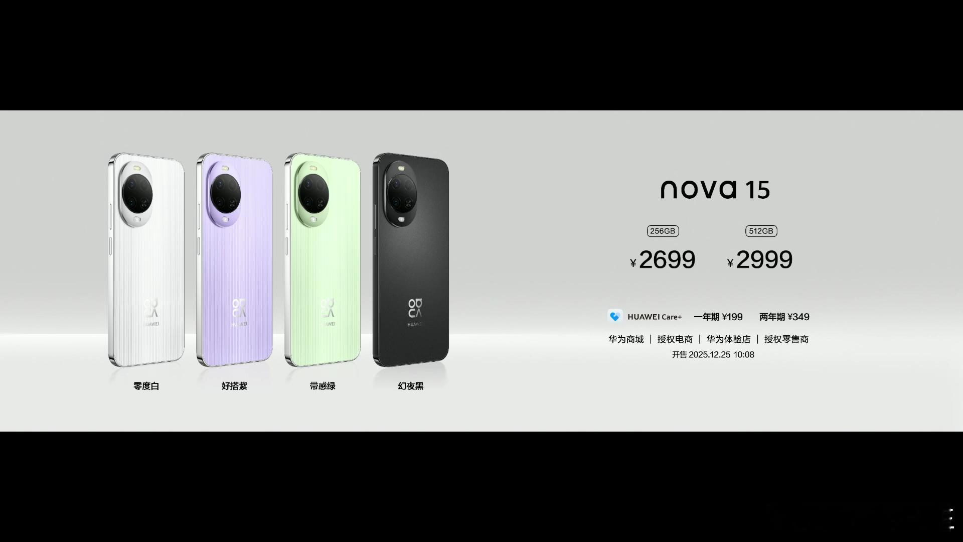 华为nova15价格:-12+256GB—2699元-12+512GB—