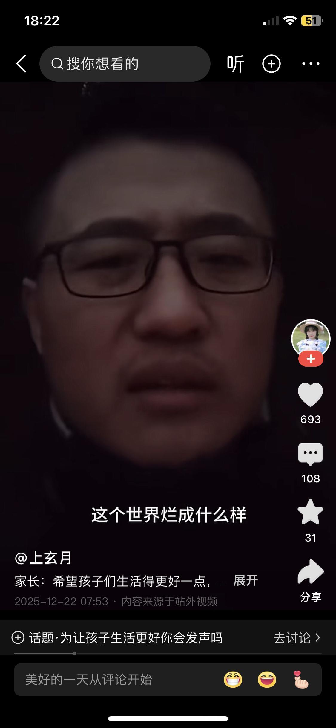 这位中年男子的呐喊,像极了许多人的无奈。因为有两个孩子,许多事都只有忍耐,因为孩子像是留在这世间的人质。多少人不是一样都这样么?但是也不能完全沉默,哪怕就利用现有的12345平台,每年发个100个提案,至少在上海50%会有回应解决。每个人都别沉默,一步步一点点改良身边的世界,改变总比完全沉默好。