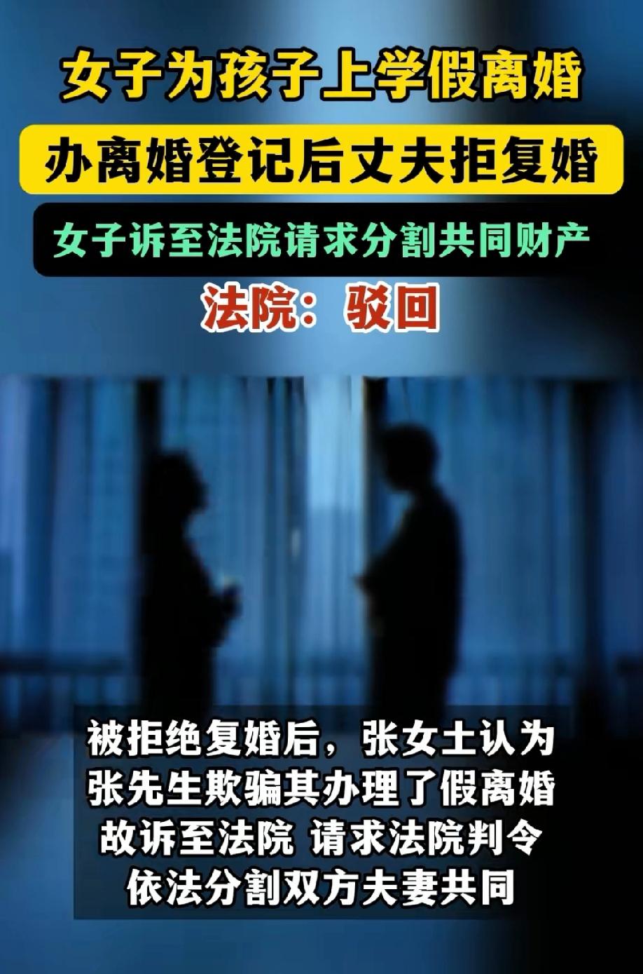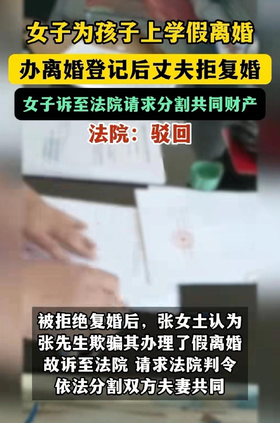 “假戏真做!”女子为了孩子能顺利上学,和丈夫商定假离婚,并办理了协议离婚的手续。等孩子入学后,女子找丈夫复婚,没想到,丈夫却一个劲的拒绝,就是不愿意复合。女子这才反应过来被骗,既然复婚无望,那就重新分割夫妻共同财产,她为此还闹上法院,不料,法院却认定离婚协议真实有效,磨灭了女子最后的希望。 2019年,李女士和丈夫张先生为了孩子的入学问题,几乎愁的睡不着觉。 几个孩子都到入学的年纪,可优质教育资源有限,学区的入学政策卡得严,夫妻俩可谓是绞尽脑汁。 琢磨来琢磨去,张先生突然一拍大腿,提出了“假离婚”的主意。 离婚可不是小事,听到这样的话,李女士一时间有点难以接受。 张先生安慰她,就是走个离婚的流程,等孩子顺利报上名,咱们立马复婚,谁也不吃亏。 李女士总觉得这事有点不靠谱,可她实在想不出第二条路,为了孩子能顺利上学,她咬咬牙还是点了头。 她当时还盘算着,不过是换个离婚证的事,等孩子入学手续办完,一家人就能恢复原样,应该不会出岔子。 俩人说办就办,很快就拿着签好的离婚协议书去了民政局,顺利领了离婚证。 离婚协议上把财产分割、子女抚养的条款都写得明明白白,李女士只当是走个过场,当时没多想,甚至签名字的时候都没仔细多看几眼。 接下来的日子,夫妻俩跟往常一样同吃同住,外人根本看不出他俩已经是“离婚”的状态。 等孩子最终顺利踏进心仪学校的校门,李女士悬着的心总算是落了地,心里美滋滋地盘算着,该跟丈夫提复婚的事了。 可让李女士万万没想到的是,等她向丈夫提出复婚时,张先生却一反常态,支支吾吾地找各种理由推脱。 一次两次,李女士还以为丈夫是工作太忙,没放在心上,可次数多了,张先生竟然直接拒绝复婚。 这时候,李女士才后知后觉地反应过来,自己怕是被丈夫算计了,所谓的假离婚,从头到尾可能就是丈夫布下的一个局。 复婚的希望彻底破灭,李女士越想越憋屈,越想越不甘心。既然没法再做一家人,那至少得把夫妻共同财产重新分清楚。 她拿着当初那份几乎没细看的离婚协议书,越看越觉得不合理,一气之下把张先生告上了法院,请求法院判令重新分割两人的夫妻共同财产。 法庭上,李女士情绪激动地陈述着当初“假离婚”的原委,一口咬定离婚协议是基于为孩子上学的虚假目的签订的,这至少属于重大误解,不应该作数。 可谁知,丈夫却一口咬定,离婚是他们的真实想法,协议上有李女士的签字,这就是真实有效的离婚。 对此,法院会如何审理呢? 一、法律上并没有“假离婚”的概念。 《最高人民法院关于适用〈民法典〉婚姻家庭编的解释(二)》第二条规定:夫妻登记离婚后,一方以双方意思表示虚假为由请求确认离婚无效的,人民法院不予支持。 本案中,李女士与张先生为孩子入学达成“假离婚”合意,并共同签署离婚协议书、办理离婚登记,领取了离婚证。 从法律层面看,离婚登记是具有公示效力的要式法律行为,一旦完成登记,婚姻关系即法定解除,不存在“假离婚”这一法律概念。 李女士主张离婚是“虚假意思表示”,但未能提供有效证据证明双方存在通谋虚伪的合意,且民政部门的离婚登记已对外产生公信力。 二、李女士自愿签署离婚协议,对双方具有法律约束力。 《民法典》第一千零七十六条规定:离婚协议应当载明双方自愿离婚的意思表示和对子女抚养、财产以及债务处理等事项协商一致的意见。 尽管李女士声称签字时“未仔细多看几眼”“只当走个过场”,但作为具有完全民事行为能力的成年人,其应当知晓签字行为产生的法律后果。 法律认定离婚协议效力的核心是“自愿签署+登记生效”,只要协议内容不违反法律强制性规定,不存在欺诈、胁迫等法定可撤销情形,即对双方产生约束力。 三、李女士主张“重大误解”并不成立。 《民法典》第一百四十七条规定:基于重大误解实施的民事法律行为,行为人有权请求人民法院或者仲裁机构予以撤销。 本案中,李女士对“离婚登记会导致婚姻关系解除”这一核心事实不存在错误认识,其所谓“误解”本质是对“丈夫会按约定复婚”的信赖落空,属于对后续履约行为的预期偏差,而非对离婚协议本身的重大误解。 法院审理认为,李女士主张的“假离婚”缺乏事实依据,不能成立。 最终,法院判决驳回了李女士的全部诉讼请求。 李女士不服一审判决,提起上诉。二审法院经过审理,结果依旧维持了原判。 说好的假离婚,没想到竟然是假戏真做,李女士为了孩子上学的妥协,竟然让她落得这般进退两难的境地。