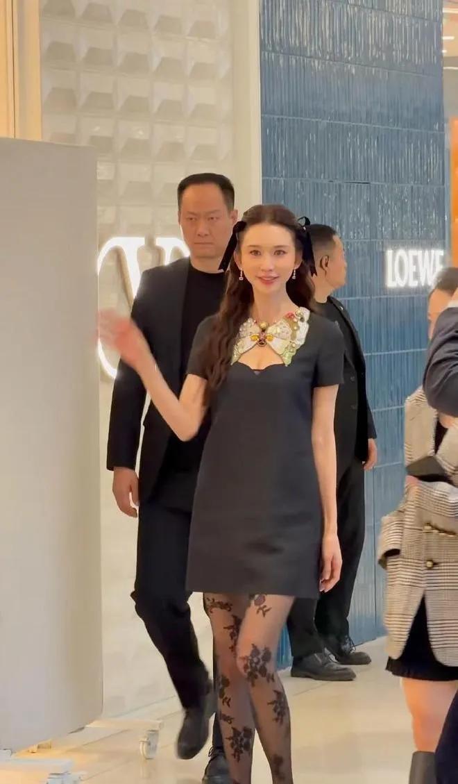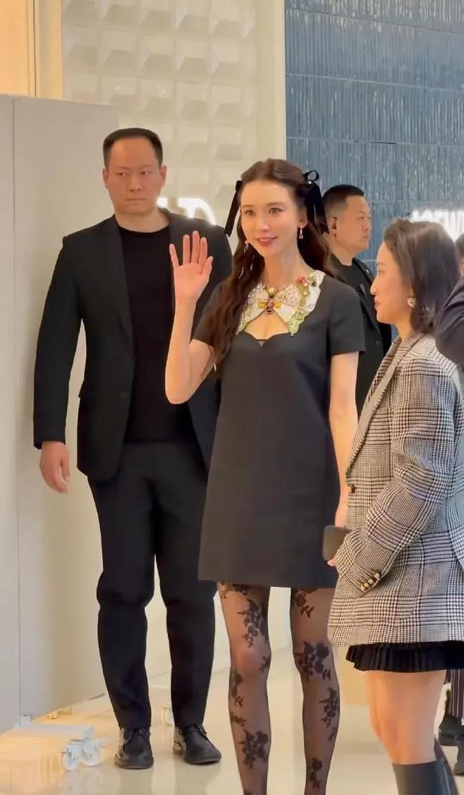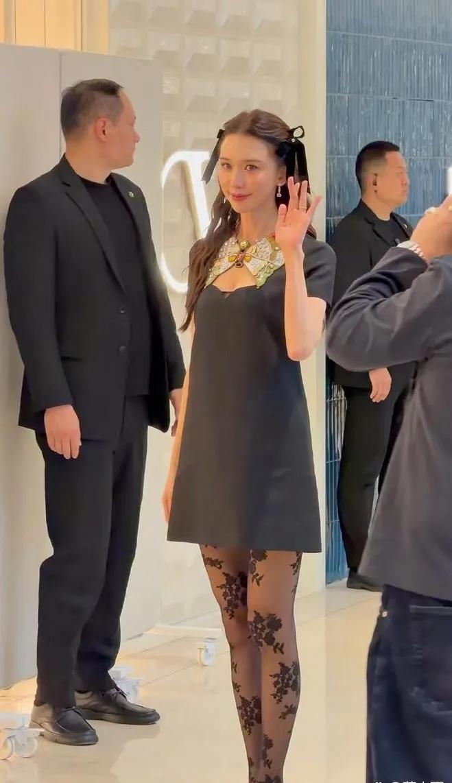 林志玲这状态哪像50岁生娃后啊!一袭黑色镂空短裙配花纹黑丝,领口的装饰精致又吸睛,长发上的蝴蝶结还添了点甜,又美又欲的“大号水蜜桃”既视感直接拉满,这韵味真的太绝了~ 林志玲 穿搭