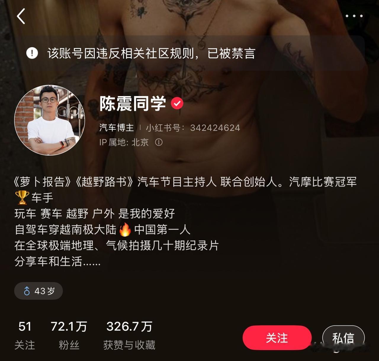 小红书今日发布声明:自案件调查结果公布至今,“陈震同学”账号始终处于禁言状态