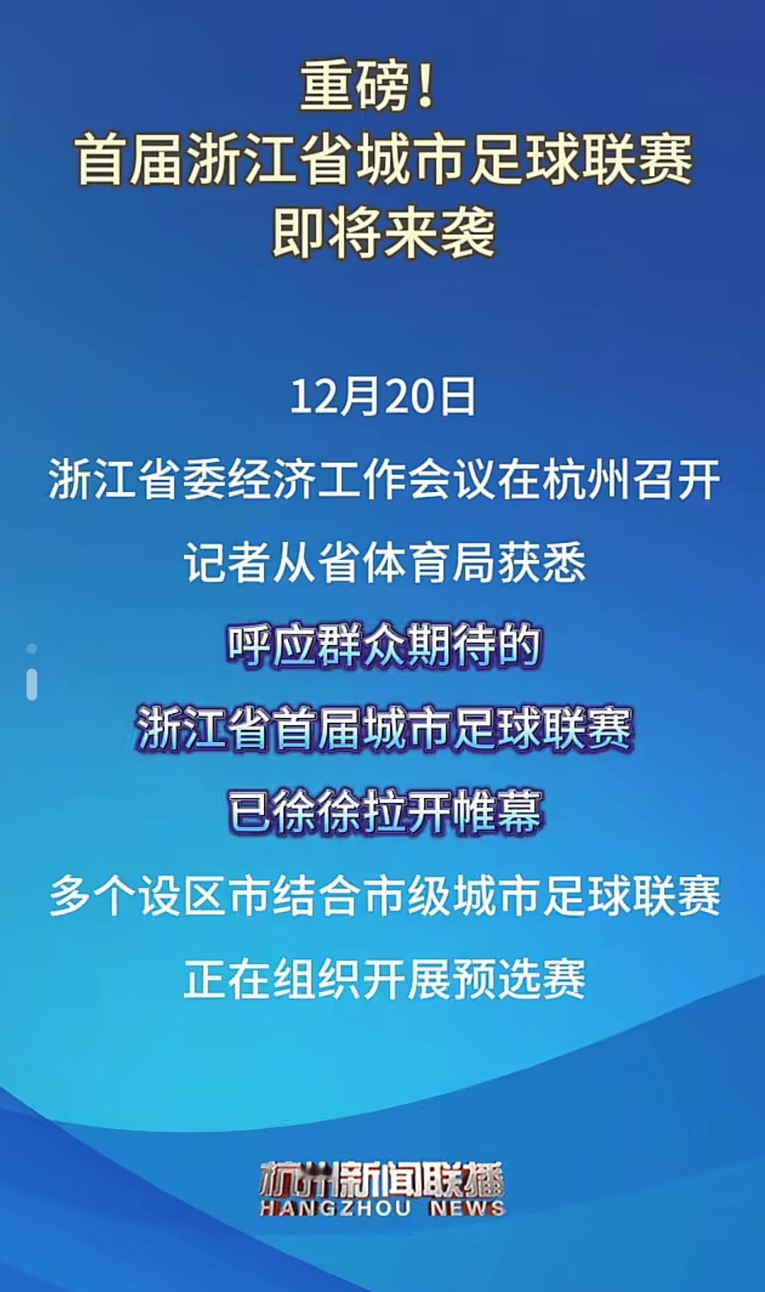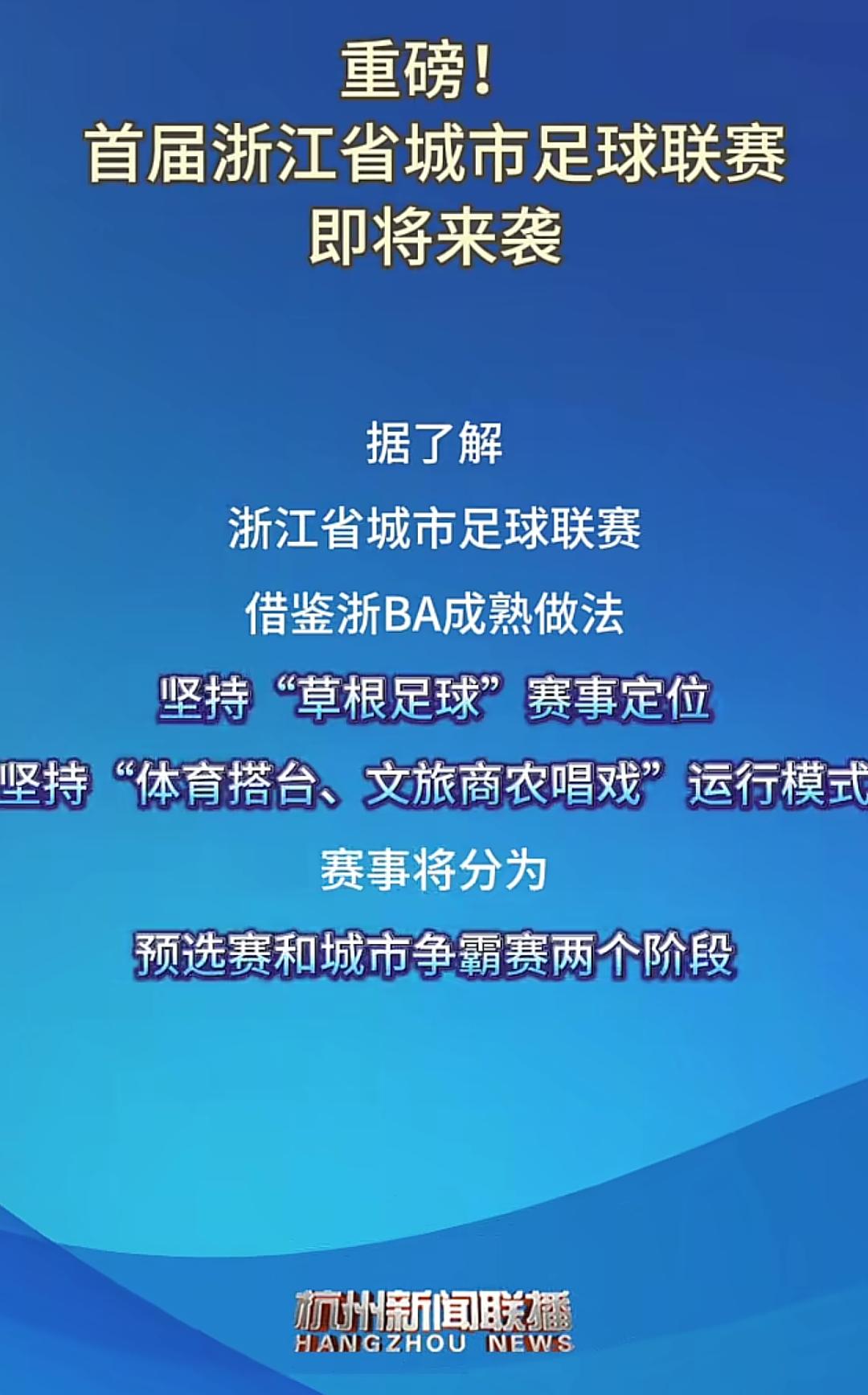“浙超”也要来了,在苏超、赣超、湘超陆续火爆之后,浙江也将跟进举办“浙超”。 其