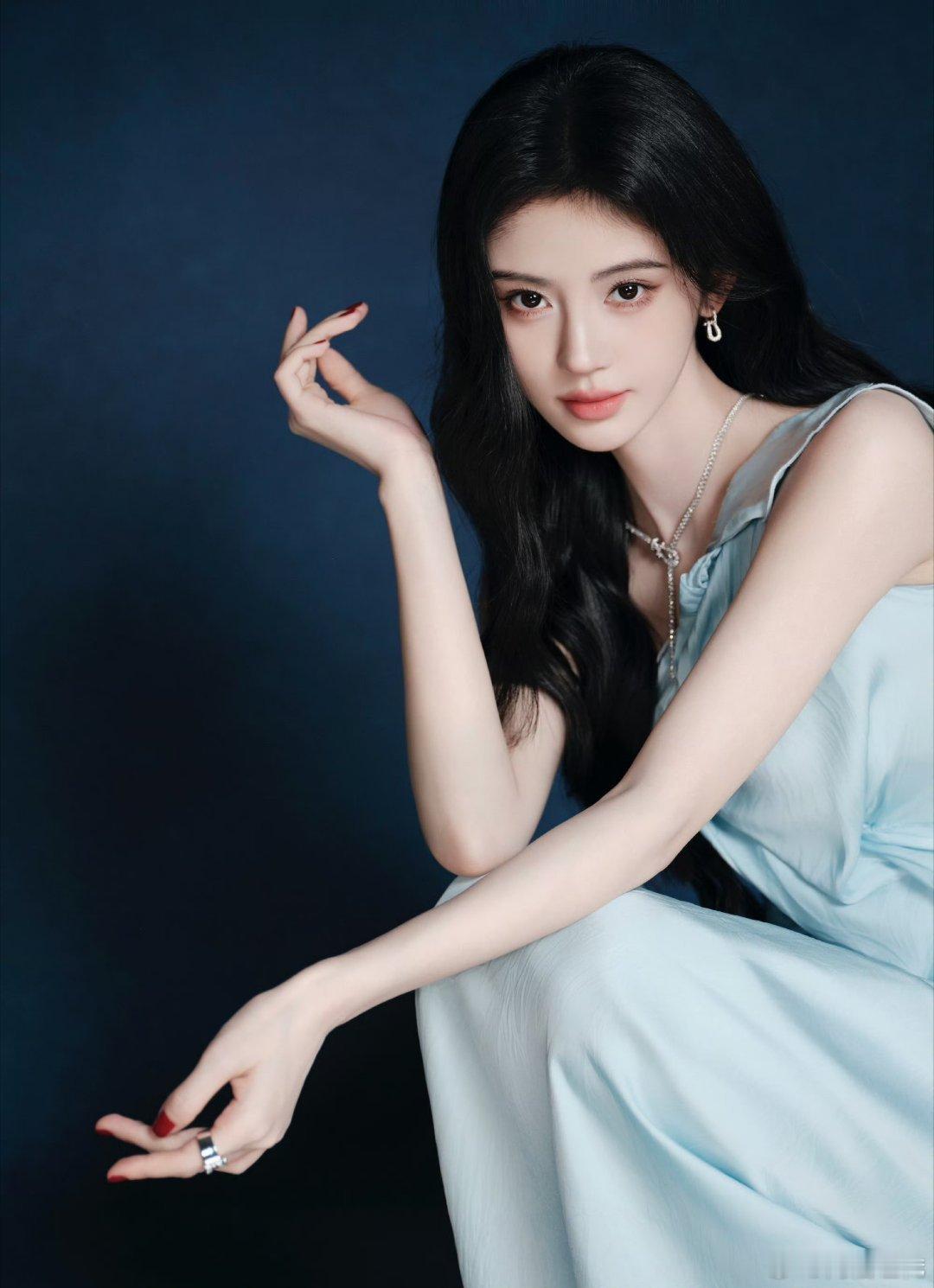 鞠婧祎时尚芭莎珠宝年度盛典造型,冰蓝色高定长裙,好清新的美~