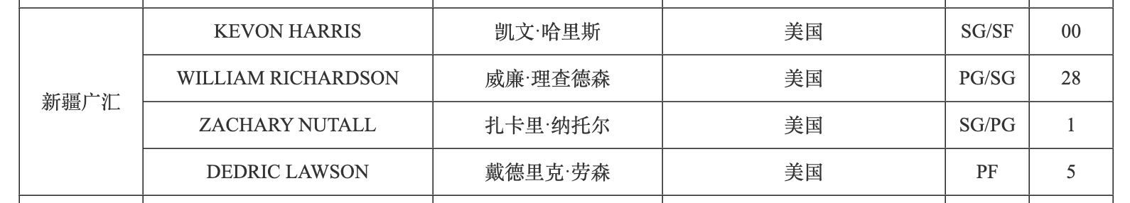 新疆男篮第四名外援凯文·哈里斯,已具备登场资格。cba