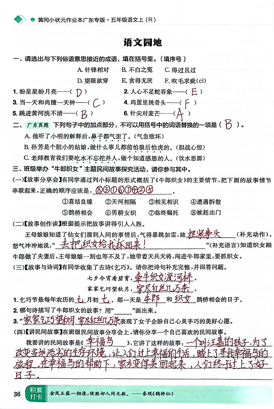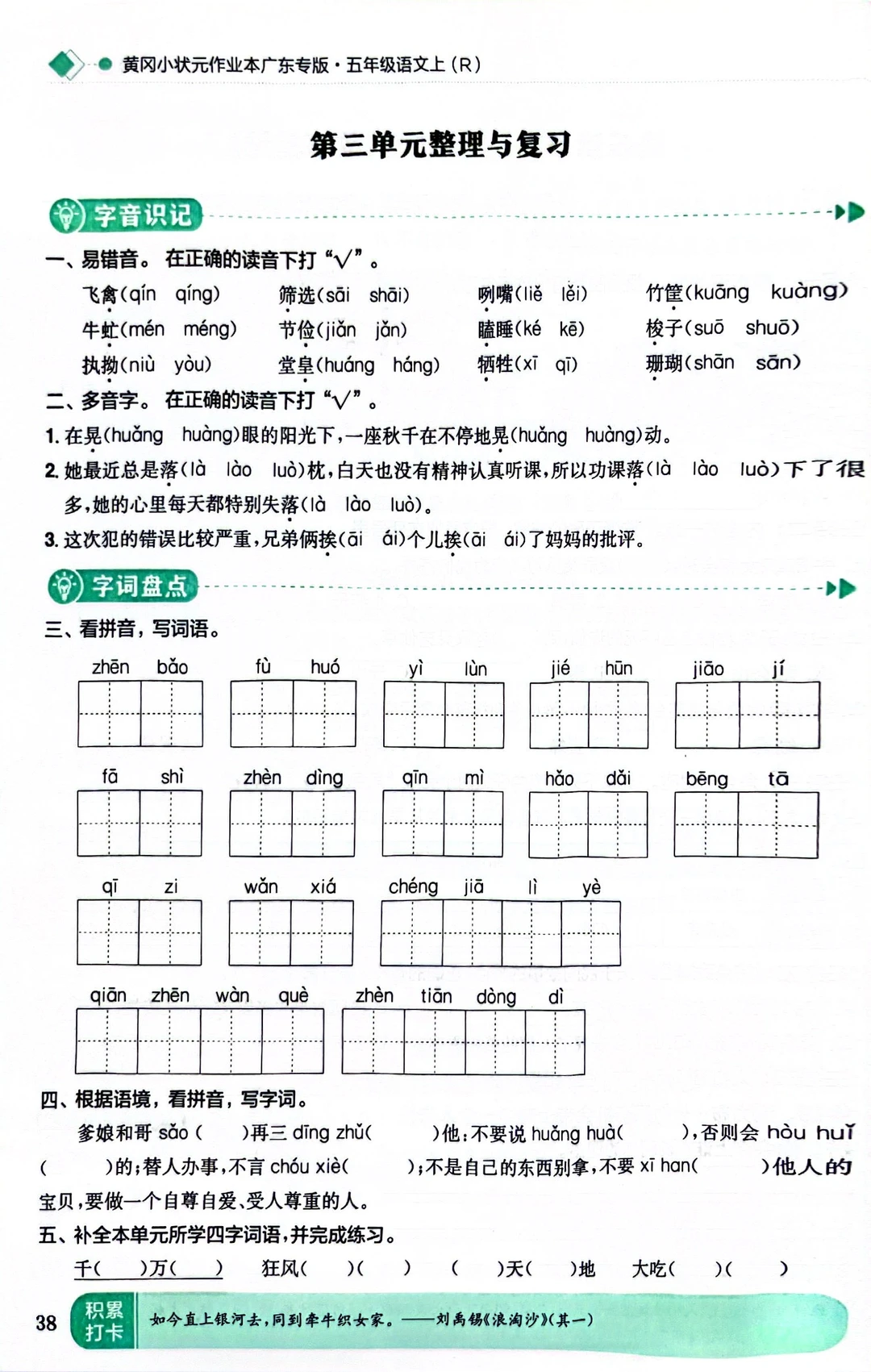 五下语文第14课《刷子李》课堂笔记及课后习题