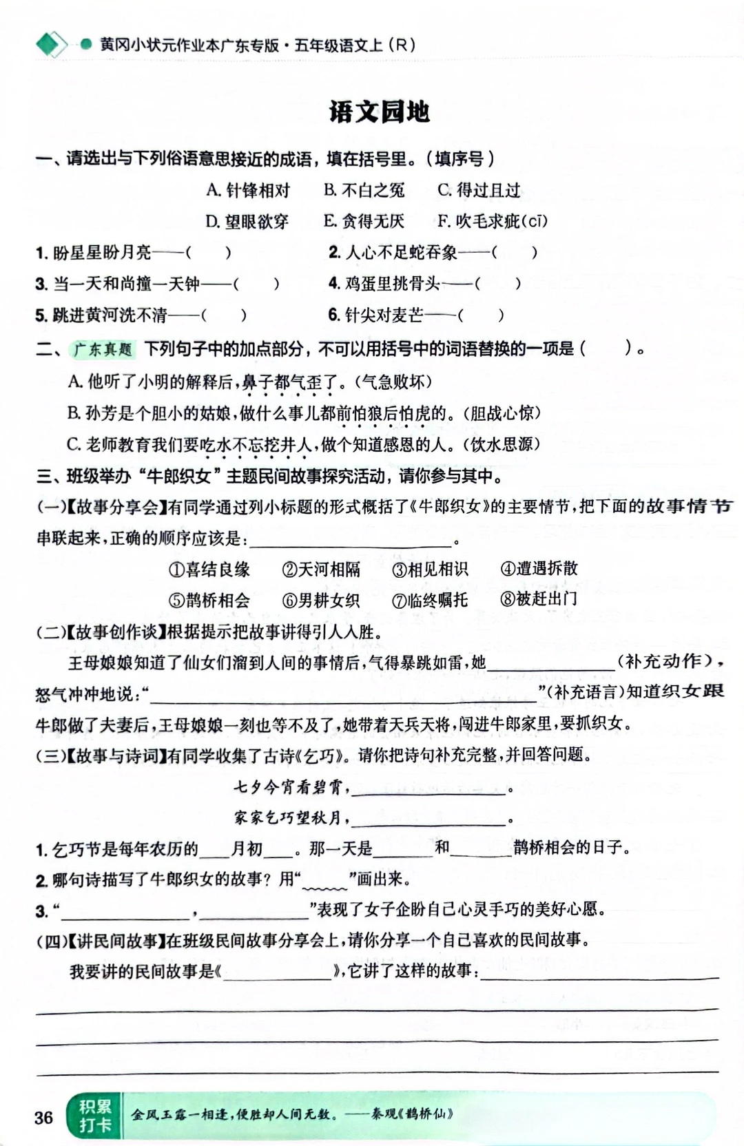 五下语文第16课《田忌赛马》课堂笔记及习题