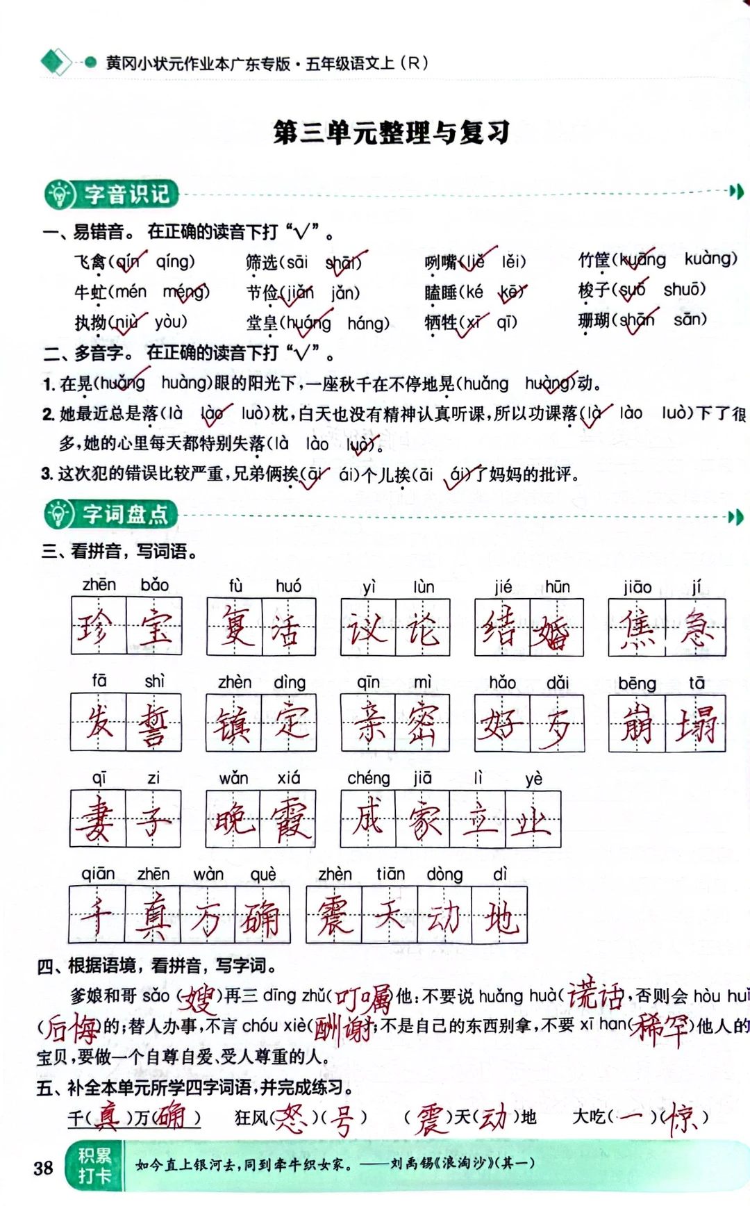 五下语文第8课《红楼春趣》课堂笔记及习题
