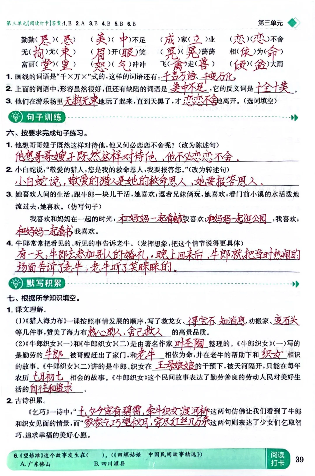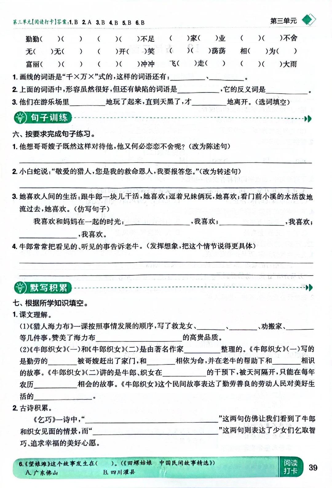 五下语文第6课《景阳冈》课堂笔记及课后习题