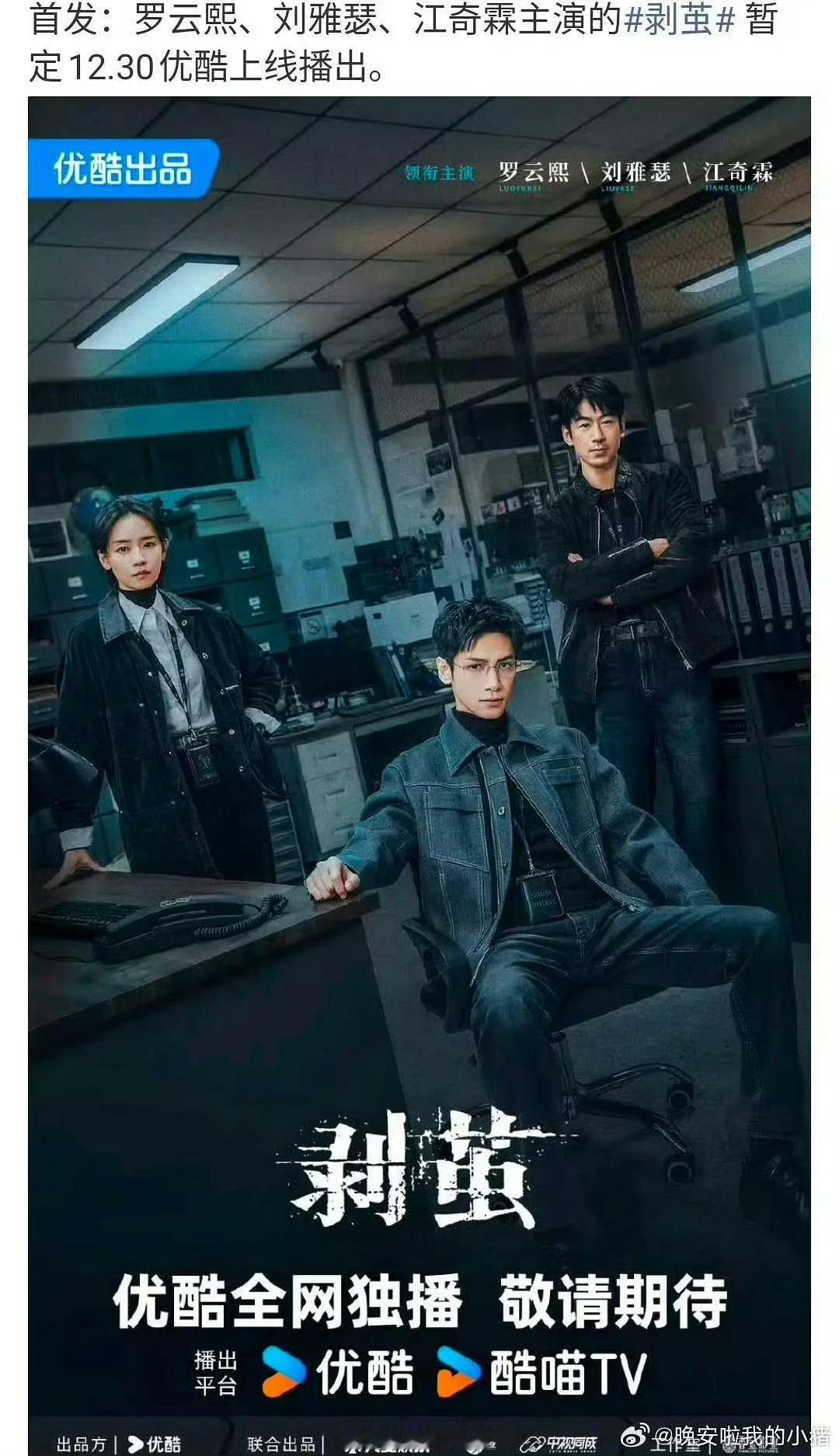 罗云熙《剥茧》要来了在优酷即将上线已经排到了第二了..