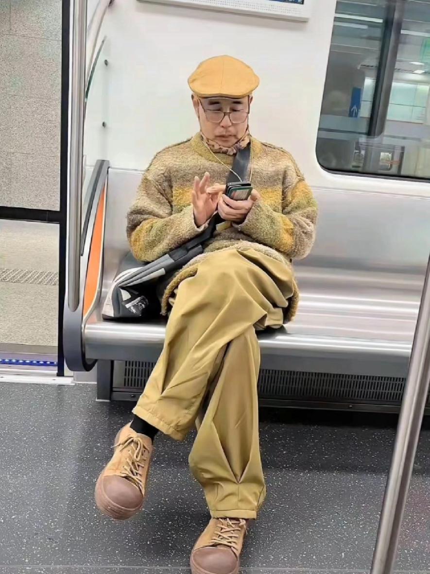 地铁上撞见这幕,我直接看呆了! 一个潮到骨子里的身影坐在车厢里, 第一眼还以为是哪个时尚博主出街,结果凑近直接惊到! 姜黄色贝雷帽配杂色针织毛衣,卡其阔腿裤搭焦糖色工装靴, 配色和版型的拿捏比年轻人还懂行。可看清脸才发现, 大爷估摸60岁上下,却靠着穿搭把“老派”二字踩得稀碎。 总有人把“年纪大”和“穿得素”绑在一起,仿佛上了岁数就该收起对美的追求。 但这位大爷的穿搭哪里是赶时髦,分明是把“生活的仪式感”穿在了身上。 真正的年轻从来不是年龄数字,而是永远愿意为自己的喜好花心思的心态。 这种不被年龄框住的鲜活,才是最动人的模样。你觉得长辈的穿搭该不该被年龄限制?
