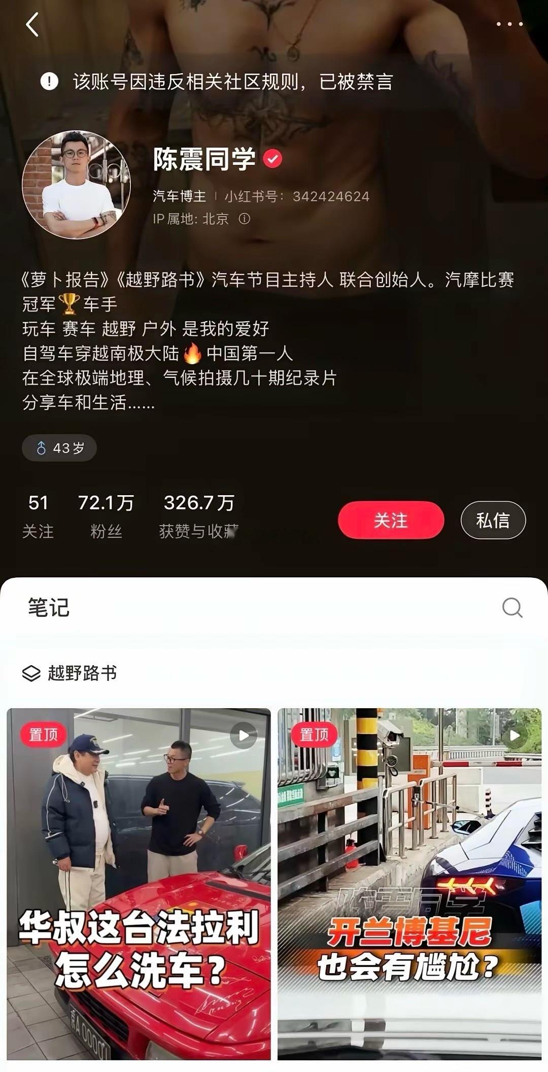 陈震的账号解封了没几分钟,就又被封禁了,大家猜测可能是跟平台方沟通之后提现账号上