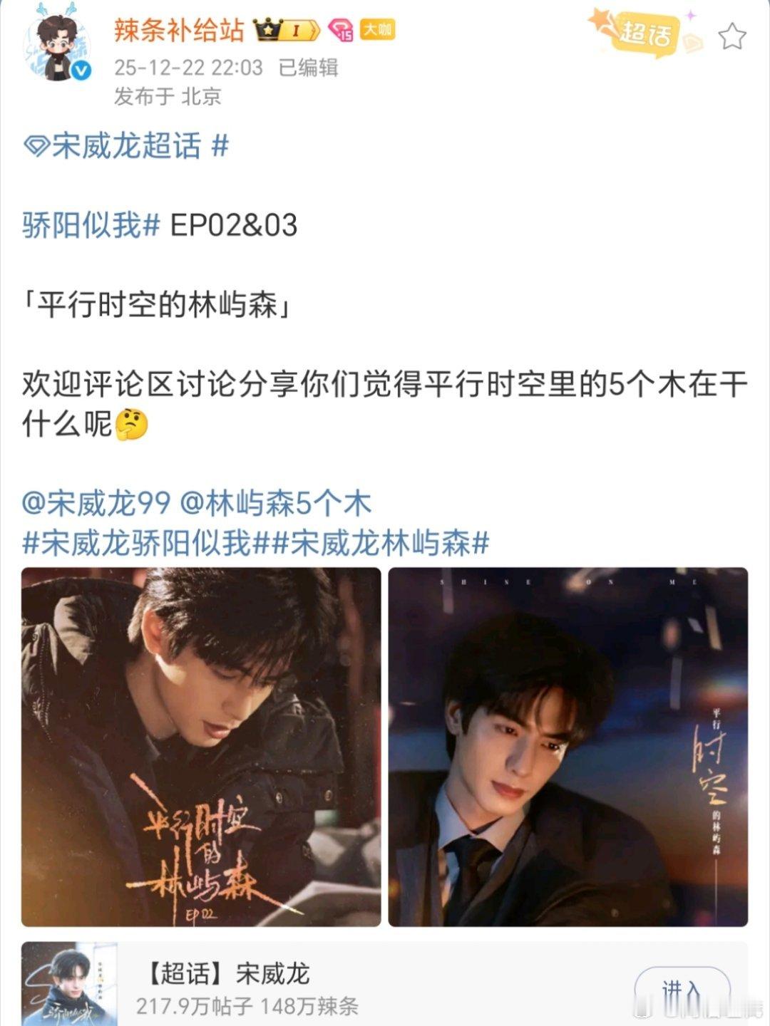 宋威龙工作室好努力 好用心的安利骄阳似我和林屿森 品鉴了一下 剧情节奏真的蛮好看的!等待男女主的故事开启🔛
