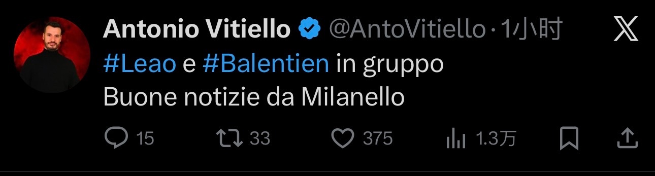 【好消息】莱奥和巴伦丁恢复合练。大圣聊球大圣聊球AC米兰ac米兰