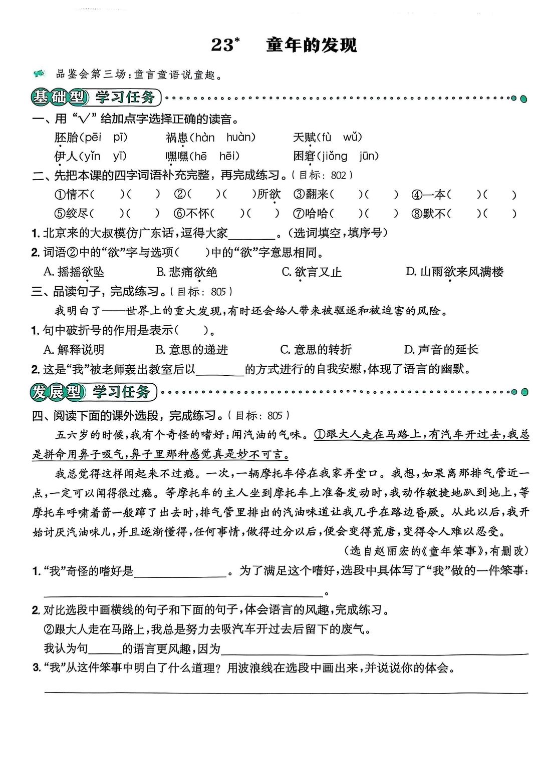 3. 找出自己觉得有趣的部分,结合生活实际,说出自己的阅读感受。(难点)