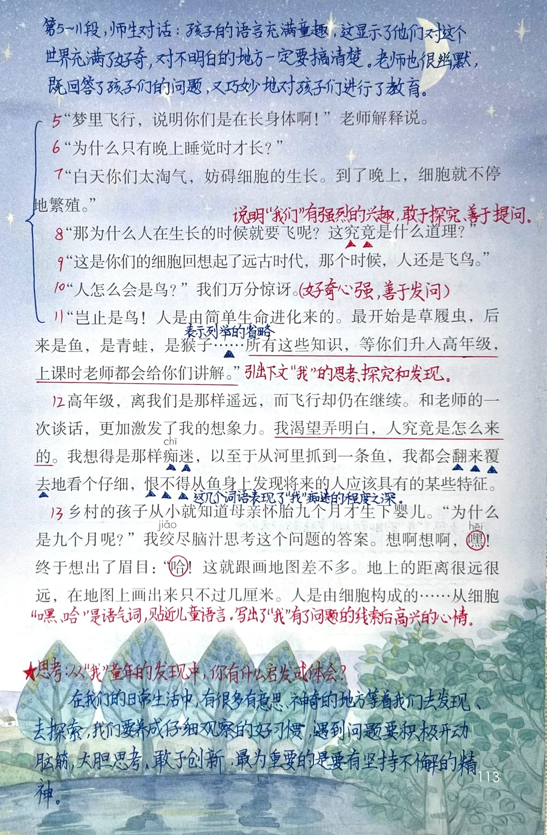 2.默读课文,说出“我”关于人为什么会在梦中飞行、人究竟是从哪里来的等问题的“发现”,以及“我”的探究过程和结果。(重点)
