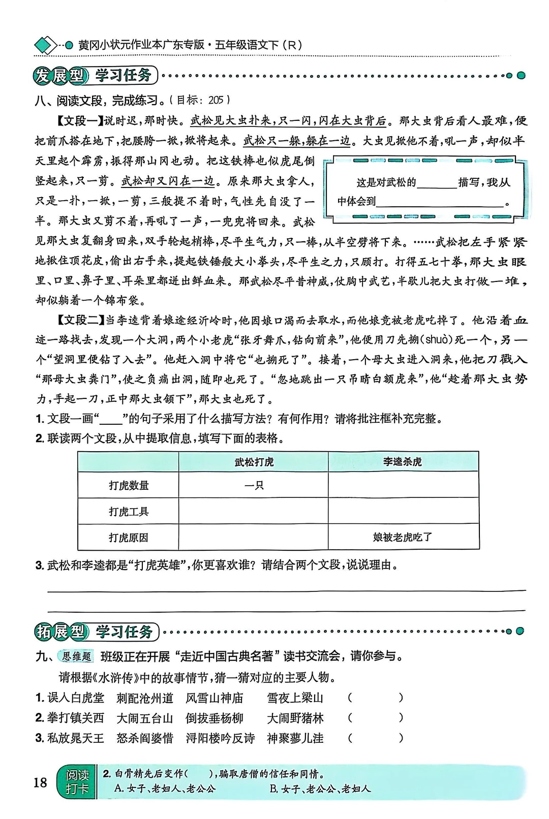 4. 能对武松进行简单的评价,并说明理由。(难点)