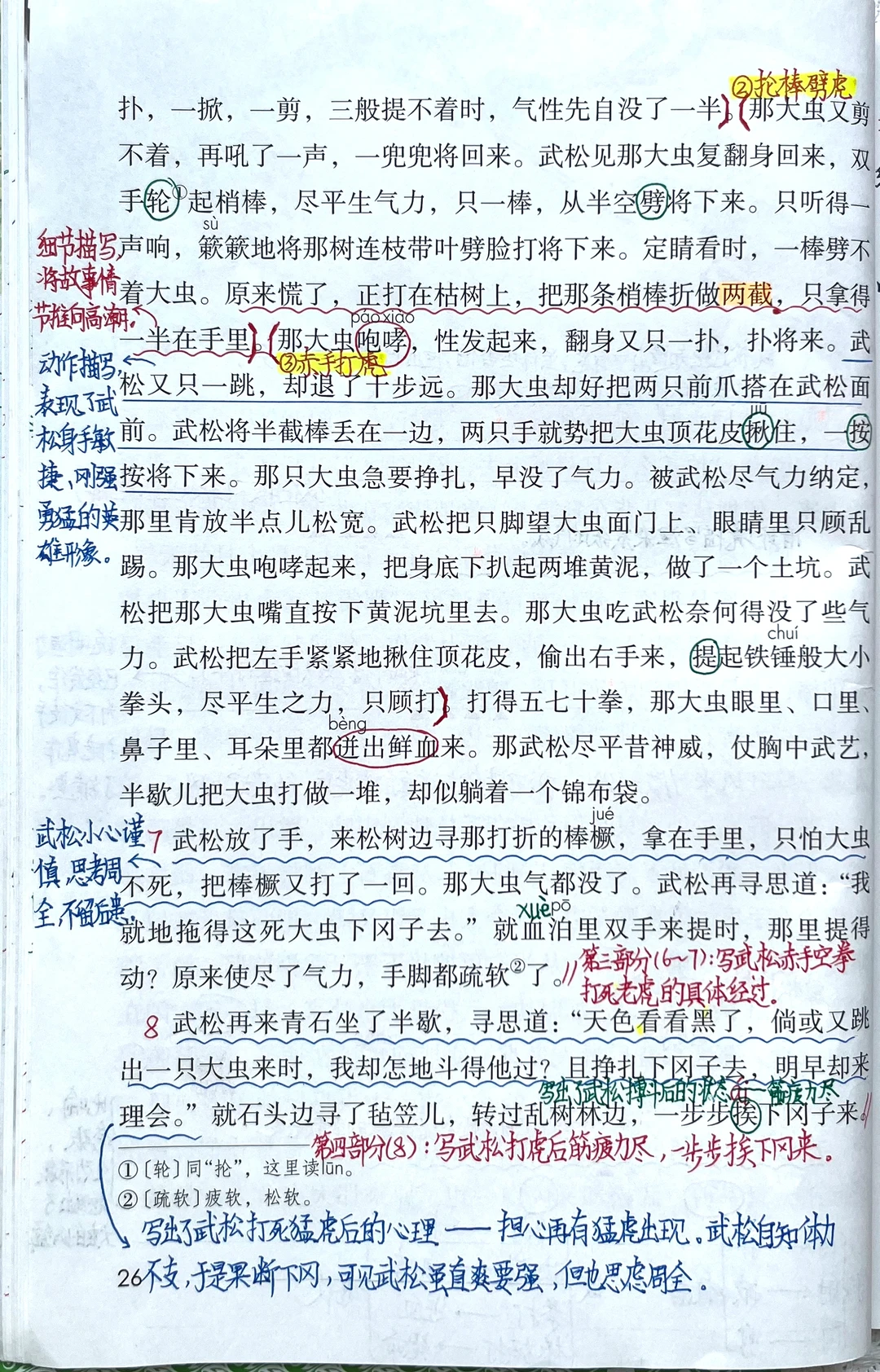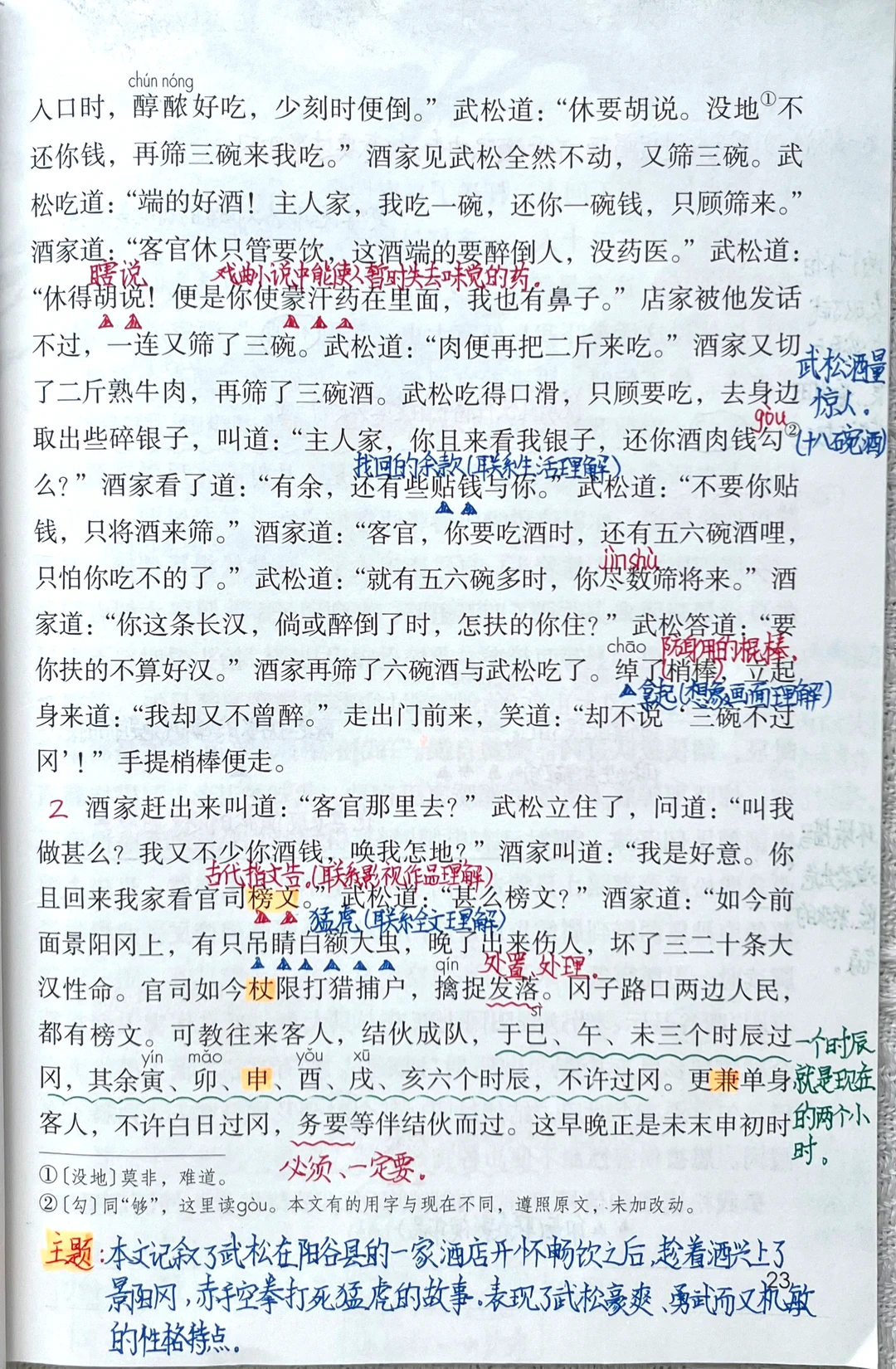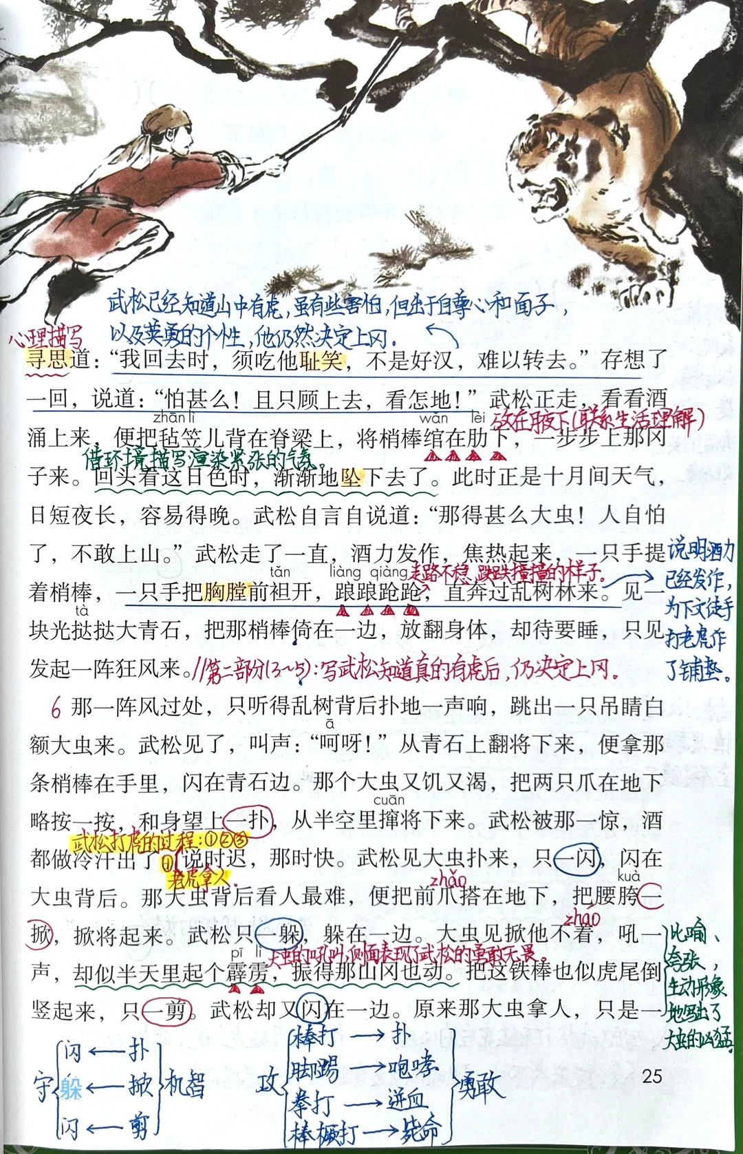 3. 能按故事的发展顺序概括课文的主要内容,并详细描述“武松打虎”的部分。(重点)