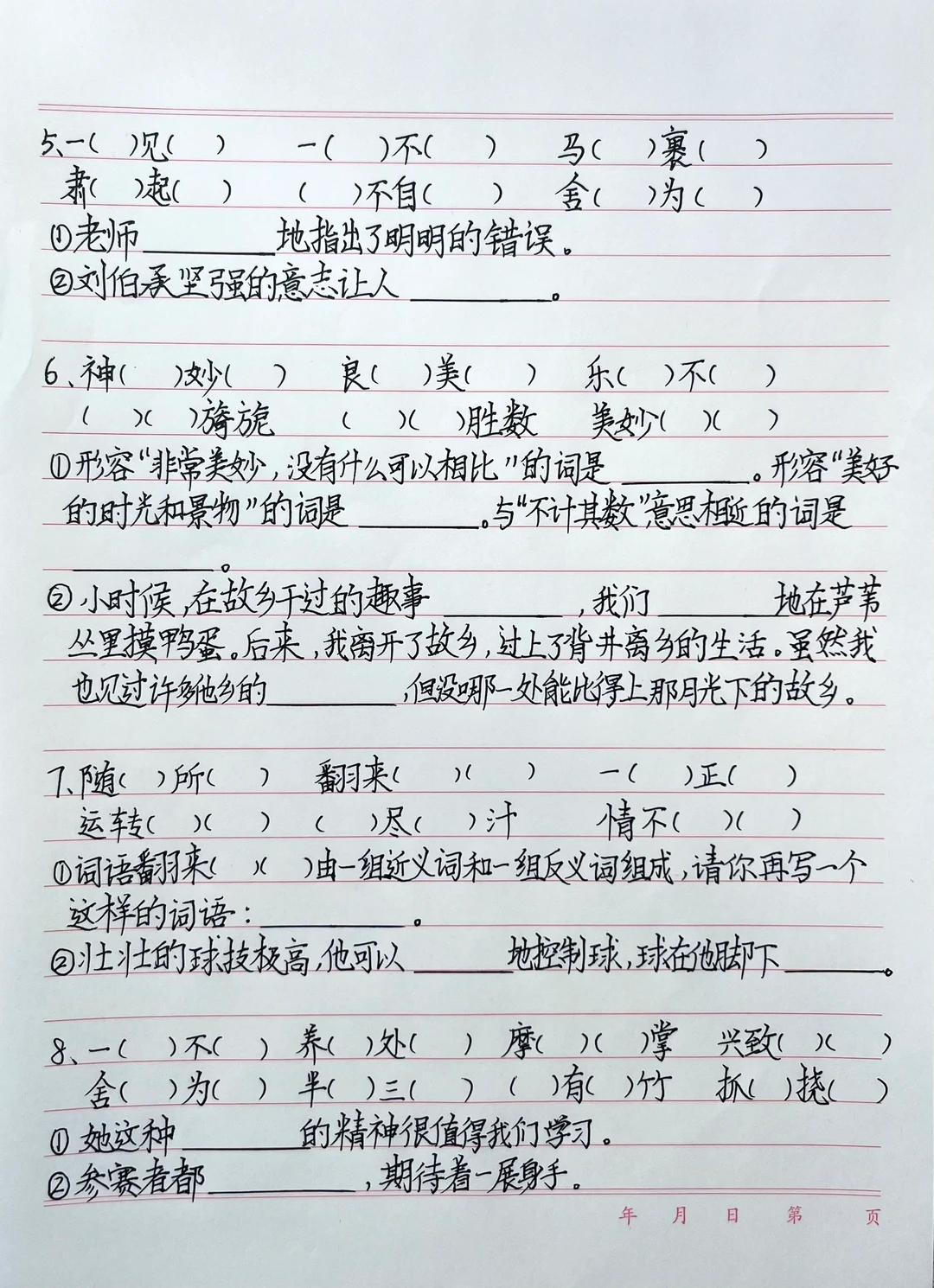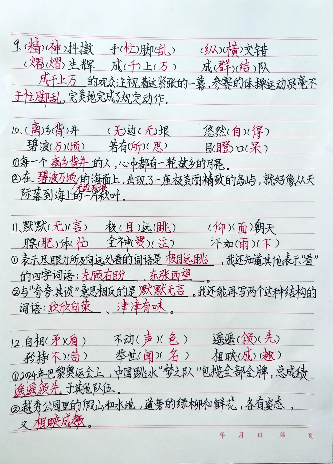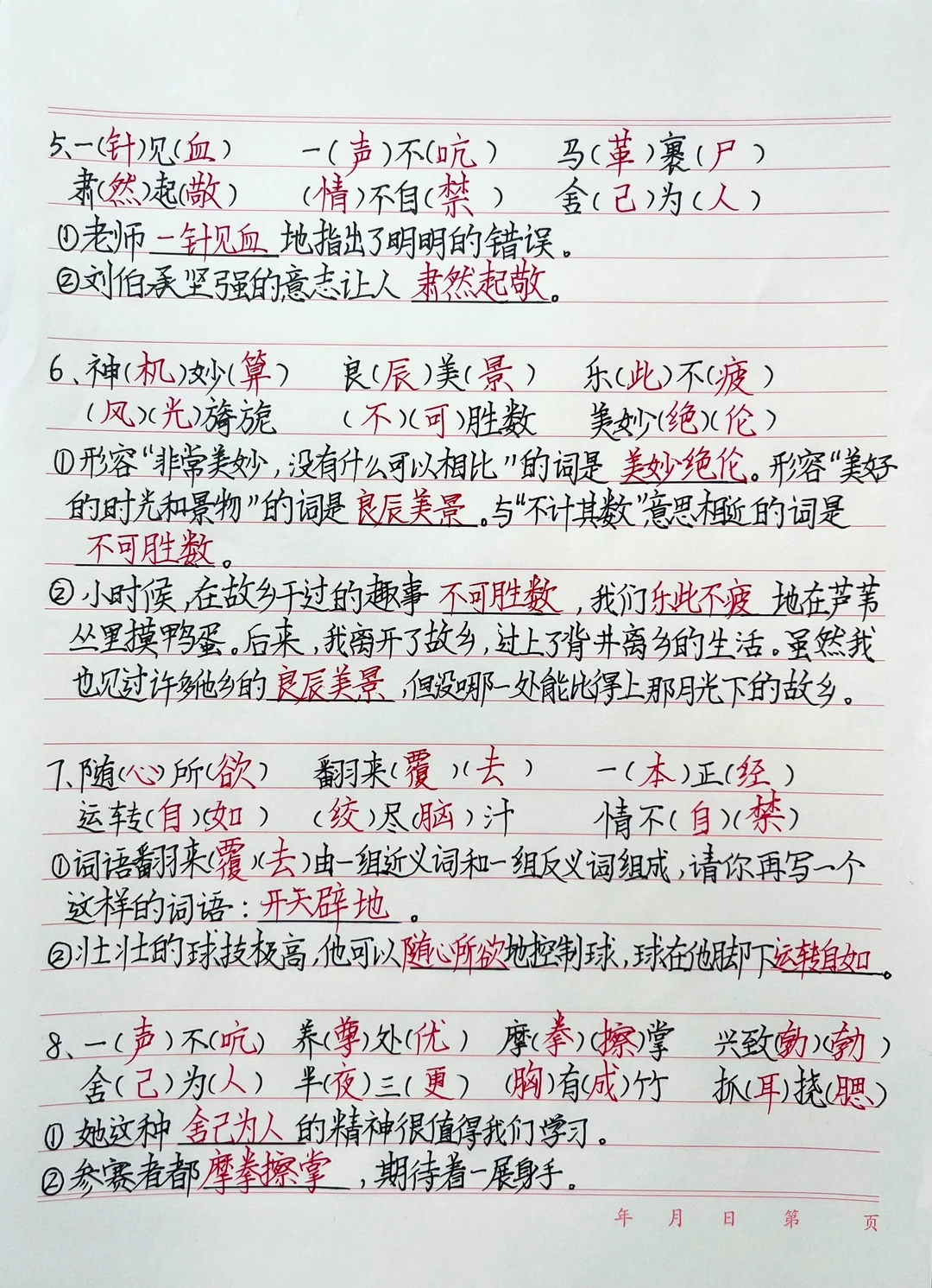 课堂笔记 五年级语文 小学语文课堂笔记 语文 字词 专项练习 四字词语 语文期末复习 小学语文基础知识 语文知识点