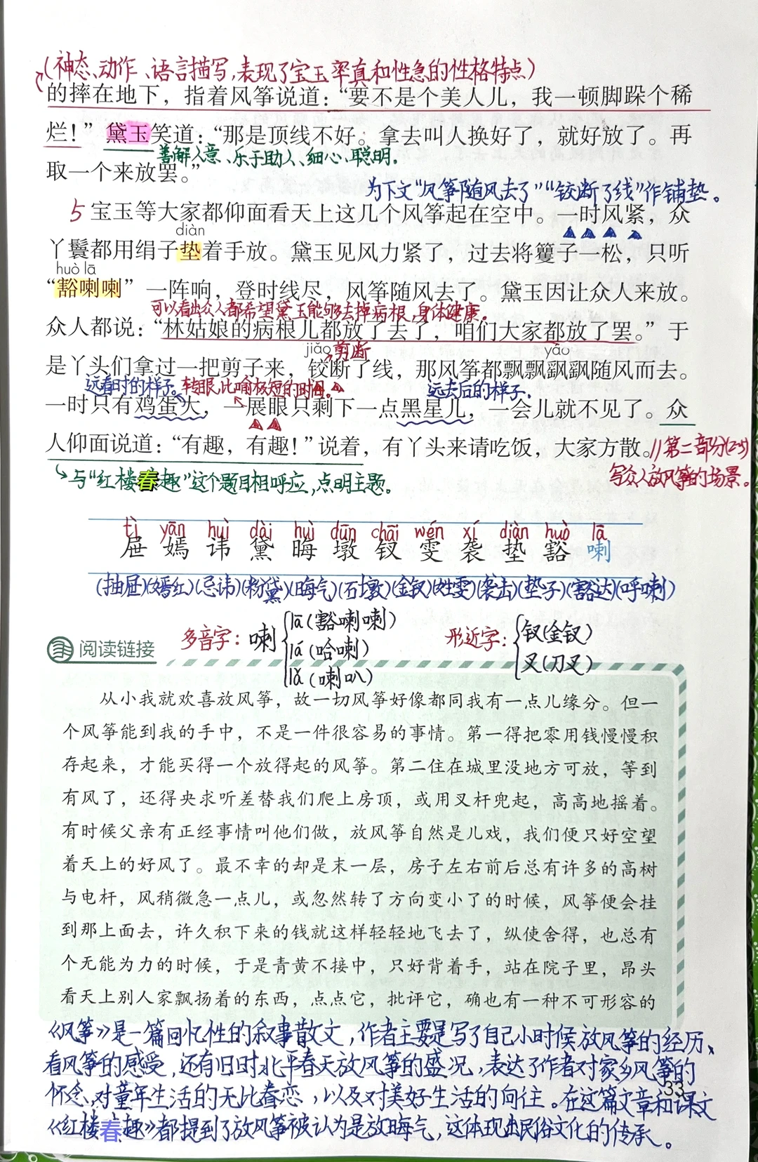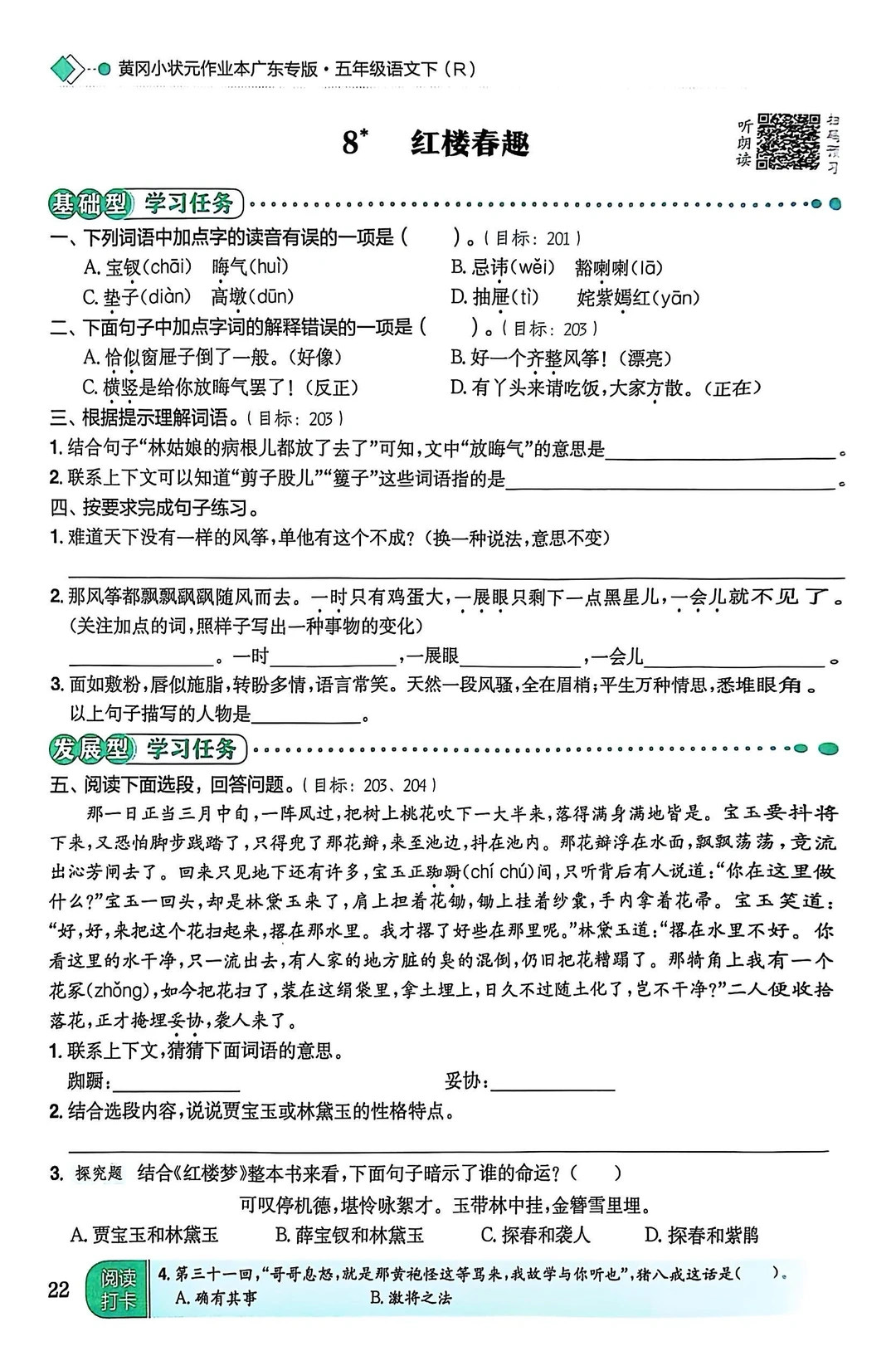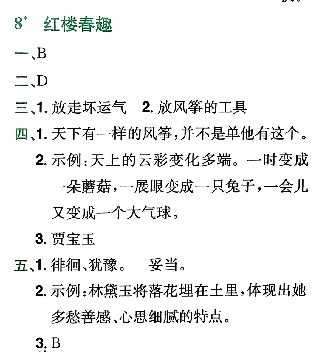 五下语文第8课《红楼春趣》课堂笔记及习题