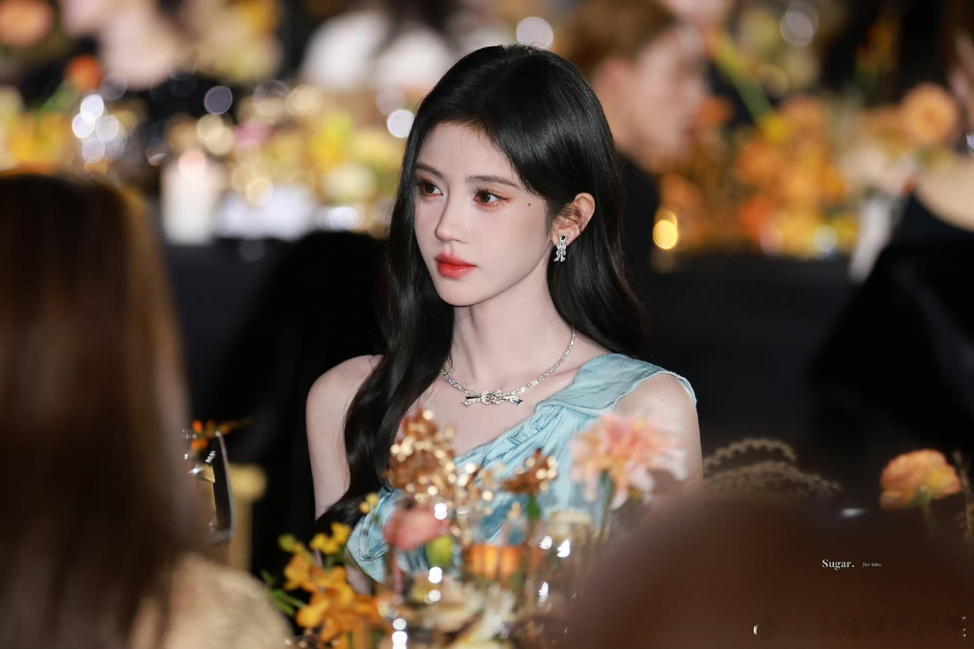 晚宴内场的鞠婧祎 谁懂啊!鞠婧祎这造型直接美到心巴上,冰蓝色裙摆摇曳生姿,珠宝在灯光下闪到晃眼,妥妥的星光女神降临晚宴!