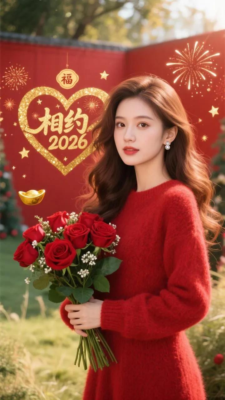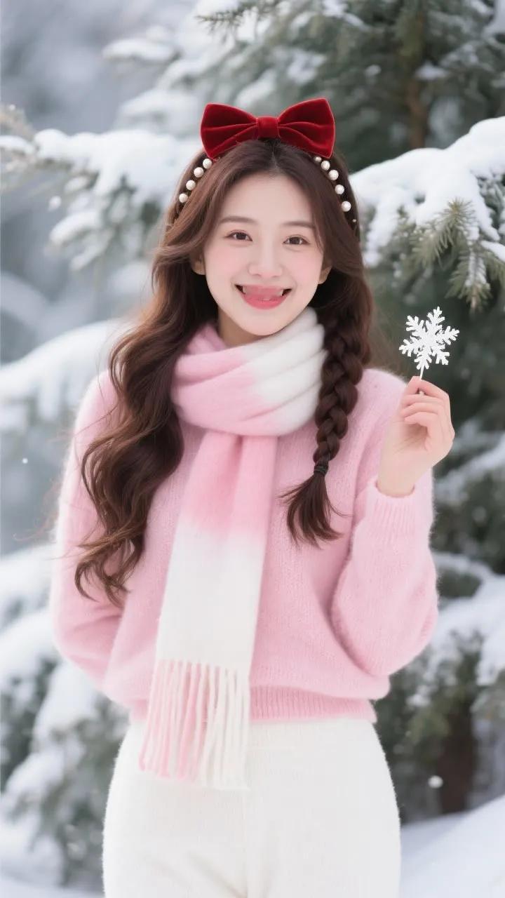 优雅红唇,复古卷发,粉色毛衣,气质满分!