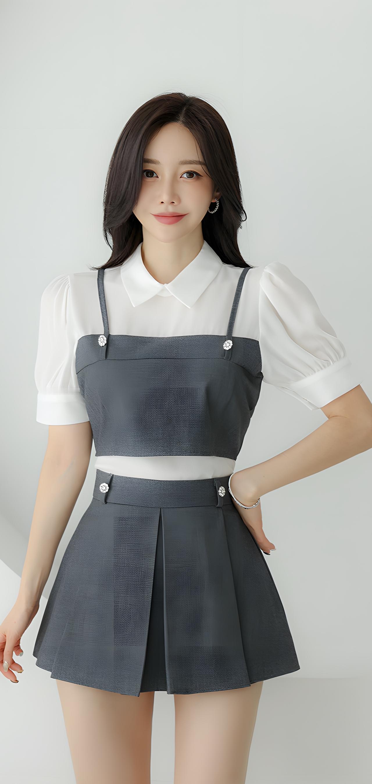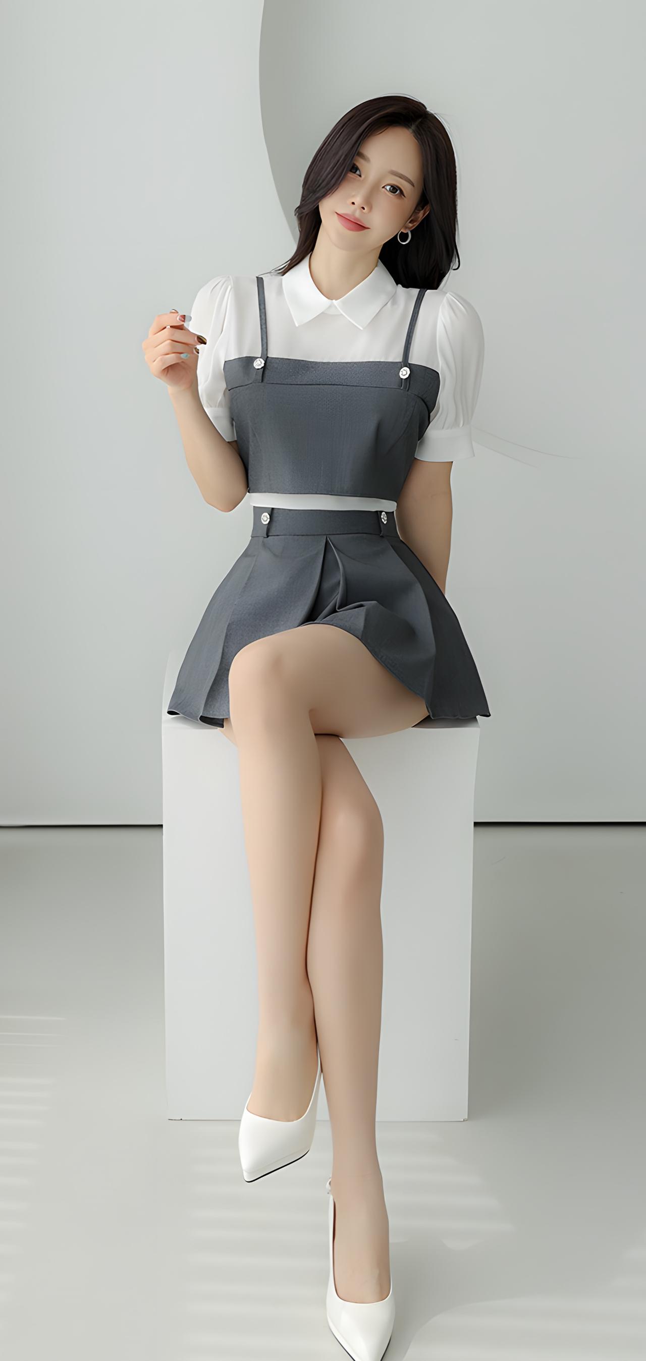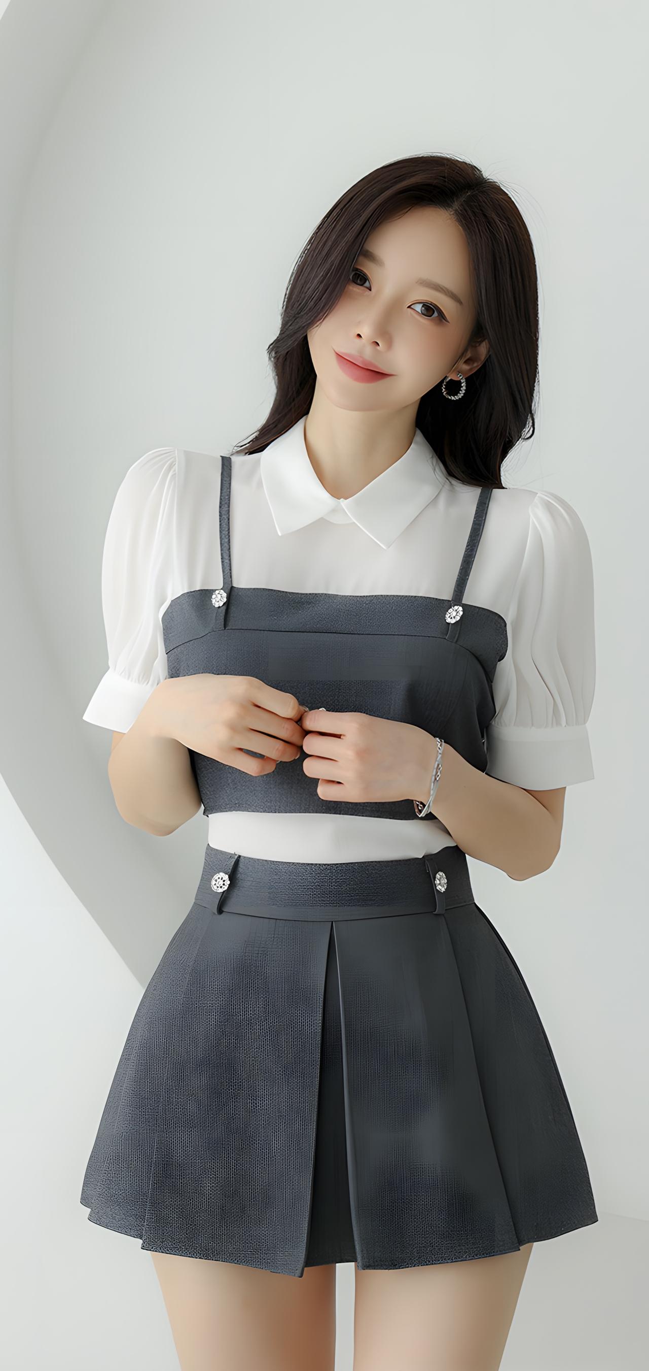 清新夏日穿搭,白色上衣搭配黑色短裙,简约时尚!