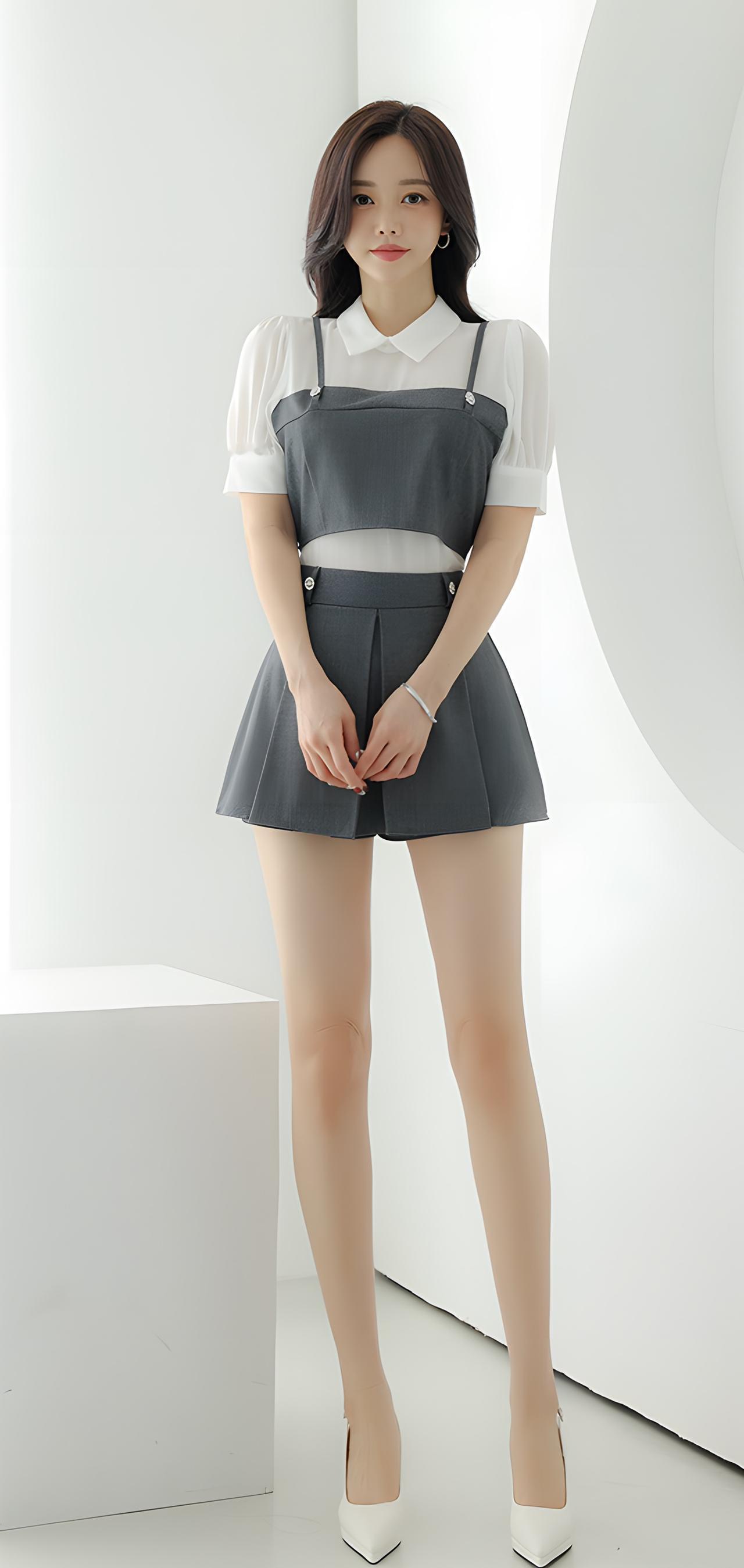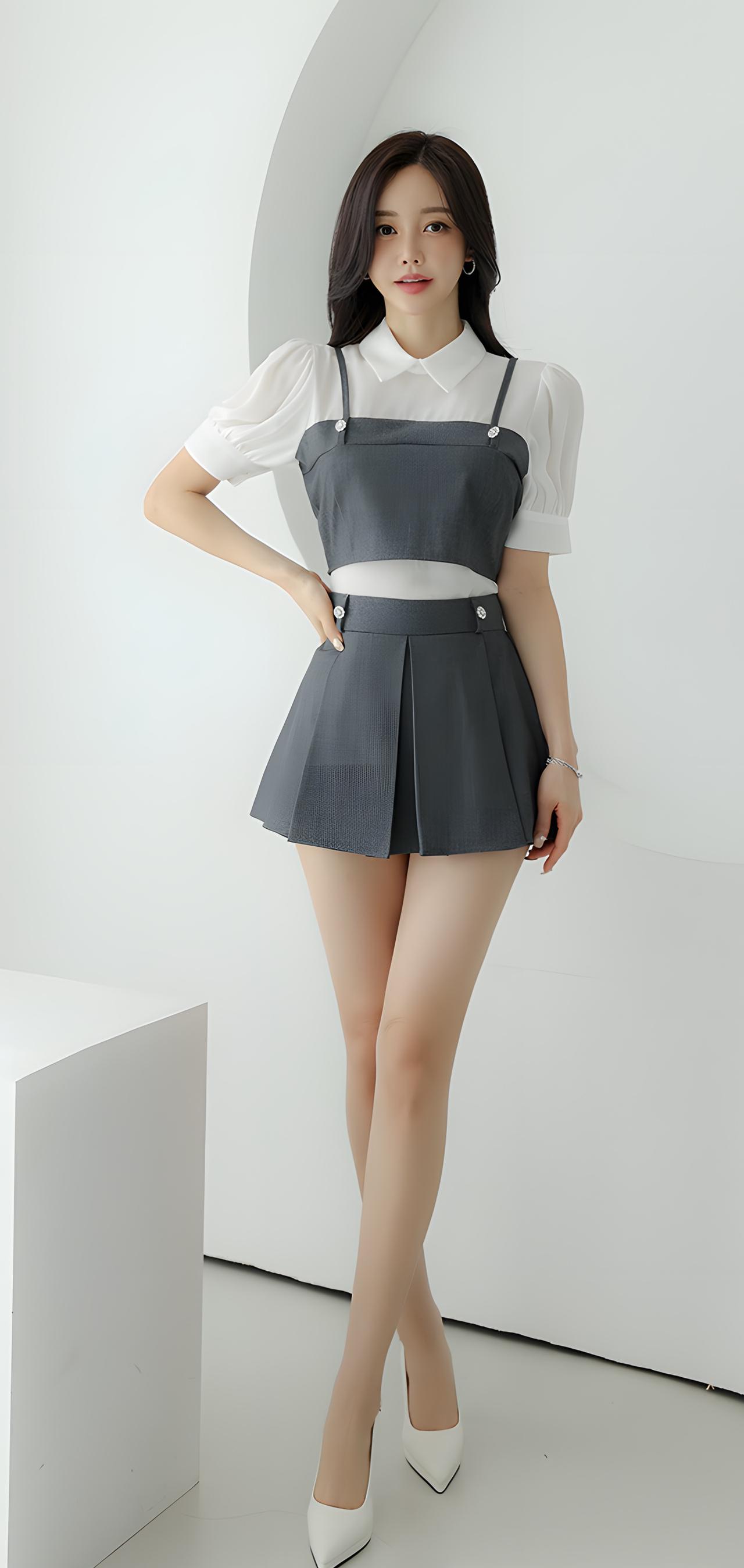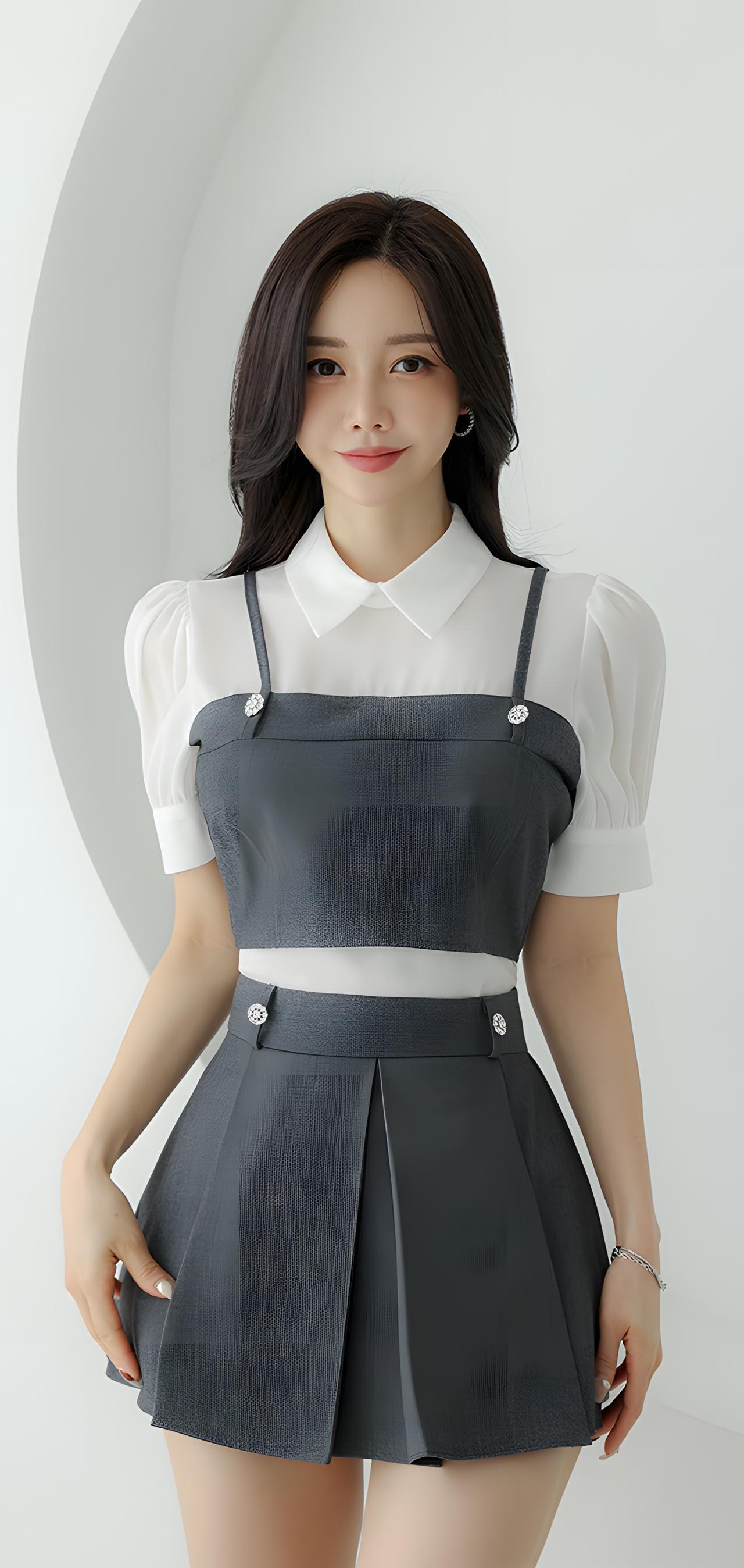 清新夏日穿搭,白色上衣搭配黑色短裙,简约时尚!